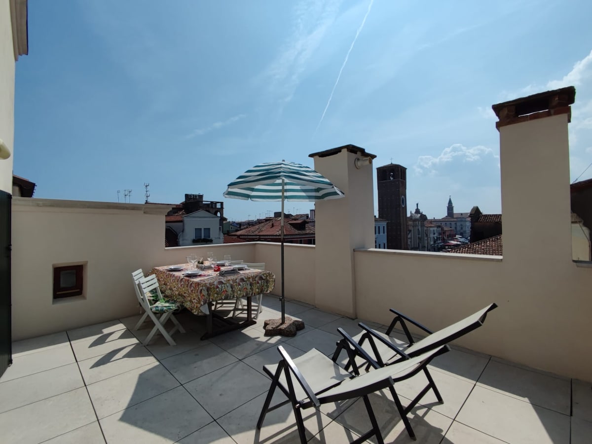 80m2 korter kolmandal korrusel vaatega ajaloolisele keskusele ja osaliselt Vena kanal, 150 meetri kaugusel paadid/ Veneetsiast, kliimaseadmega. Koosneb kahekohalisest magamistoast, ühekohalisest magamistoast, diivaniga elutoast, uhiuuest köögist, vannitoast ja terrassist, kust näed ka laguuni ja sadamat. Terrassil on lauad, toolid ja vihmavari, et nautida hommikusööke, aperitiive, õhtusööke või isegi lihtsalt päikesevanni täielikus lõõgastumises.
