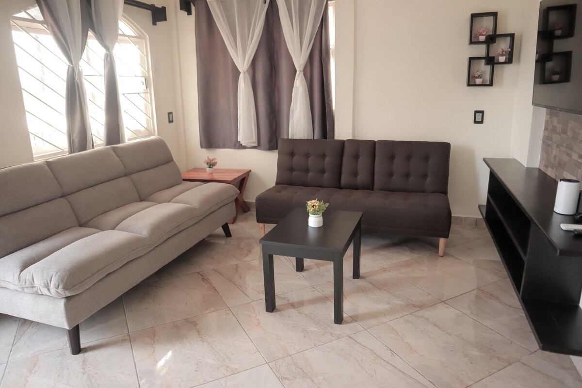 •Hubane koht ja suurepärane asukoht 5-minutilise jalutuskäigu kaugusel Acayucani kesklinnast. Pankade, restoranide ja esmatarbekaupade kaupluste lähedal. •Keskne, turvaline ja rahvarohke piirkond. •Korter on sisustatud ja varustatud, 1 magamistuba kliimaseadme, köögi ja elutoaga. • kaetud parkimine 2 autole. • Ainult väikesed lemmikloomad. •Enne broneerimist loe eeskirju.