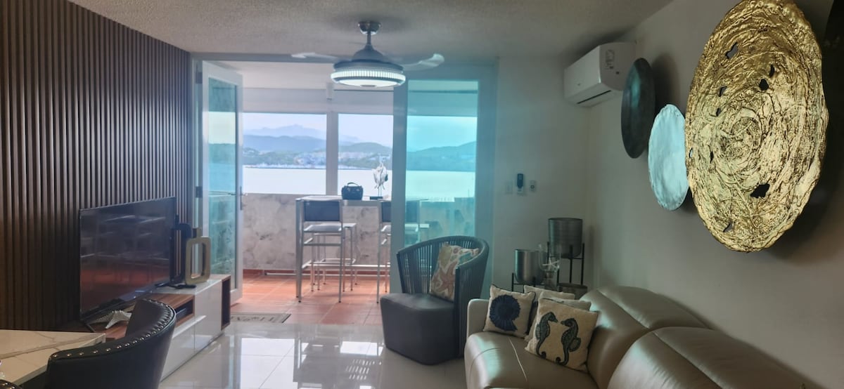 Fully furnished apartment, modern and with unique spaces. Close to restaurants, shops, beaches and ports. Place comfortable and safe. Both rooms have air. The living room and main room have a smart TV. Kitchen fully equipped. Balcony with beautiful sea view.