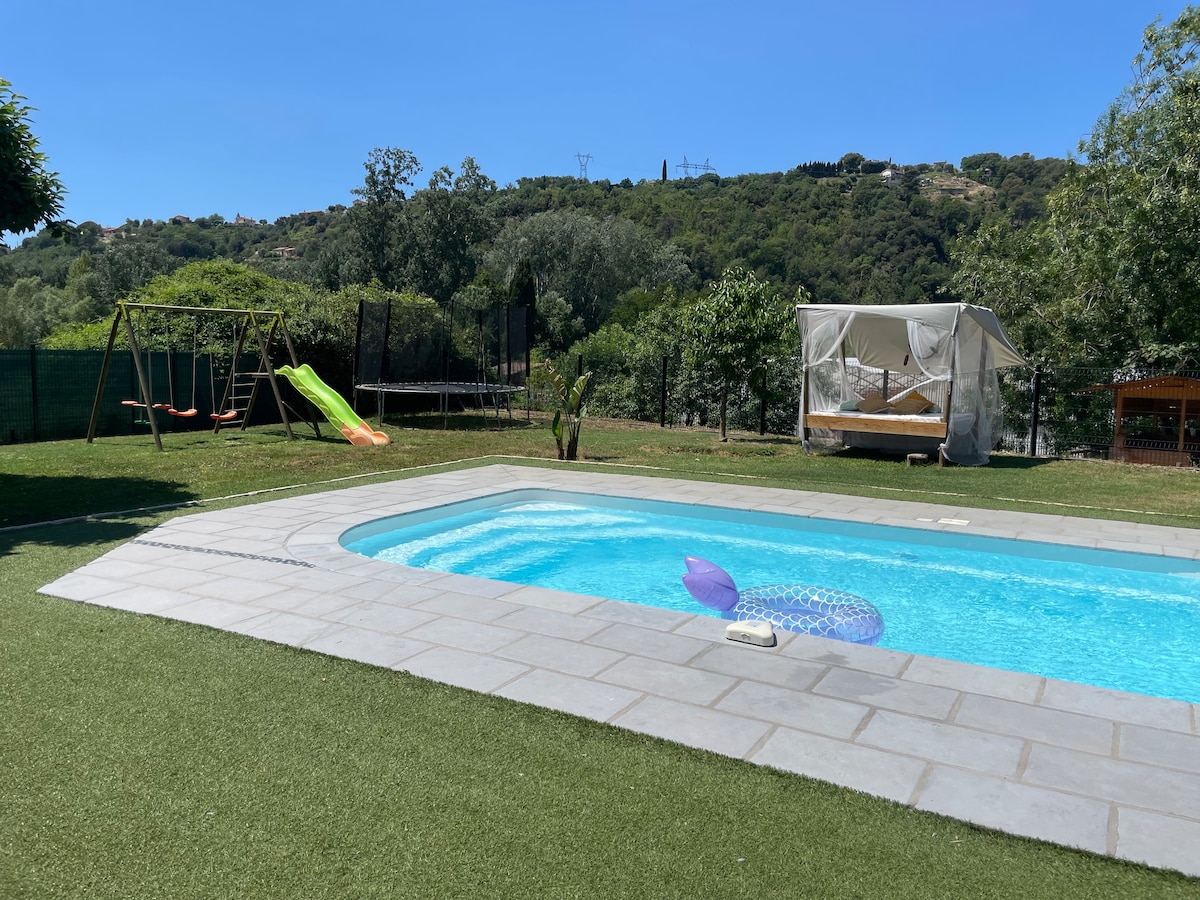 Villa sur Vence rénovée haut de gamme. Quartier prisé et calme. 5 Chambres avec SdB. Espace dédié 18m² climatisé bureau salle de réunion, superbe vue, internet haut débit. Piscine neuve 9x3m. Climatisation. Cheminée. Salle de musique. 10min du centre ville à pieds. Plancha, PingPong. Caution requise contre tout dommage en complement du AirCare. Pas de charge de voiture électrique autorisé. Interdit aux familles 1) avec enfants de 1 à 7 ans ne sachant pas nager. 2) sans adultes de plus de 35 ans.