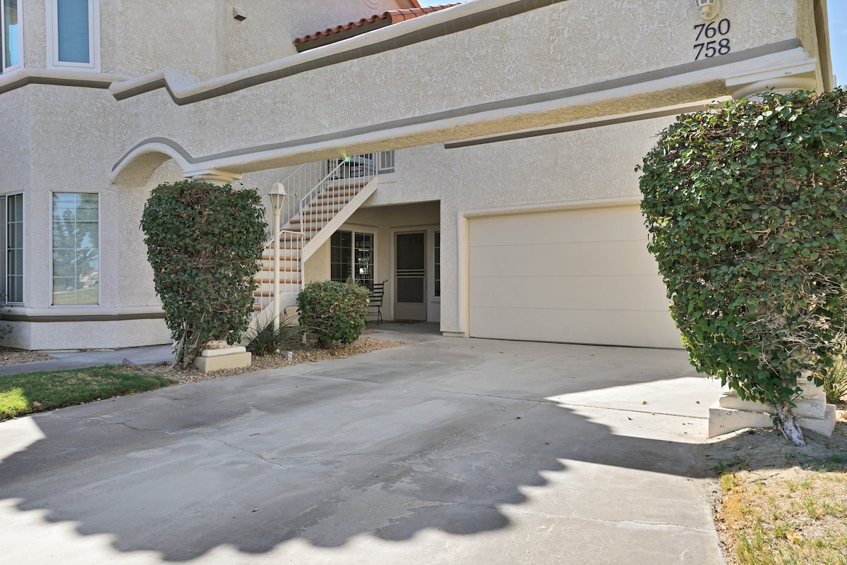 This colorful, contemporary 2BR/2BA lower-level condo is your perfect Palm Desert retreat 🌴 Steps from a sparkling pool + hot tub, the space is fully furnished with everything you need to relax and recharge. Enjoy sunset mountain views from the back patio, gathered around the fire pit in your own private, lush oasis 🔥⛰️ We love furry friends 🐾 A $100 non-refundable pet fee is added at booking. A Pack ’n Play + high chair are also available for little ones.