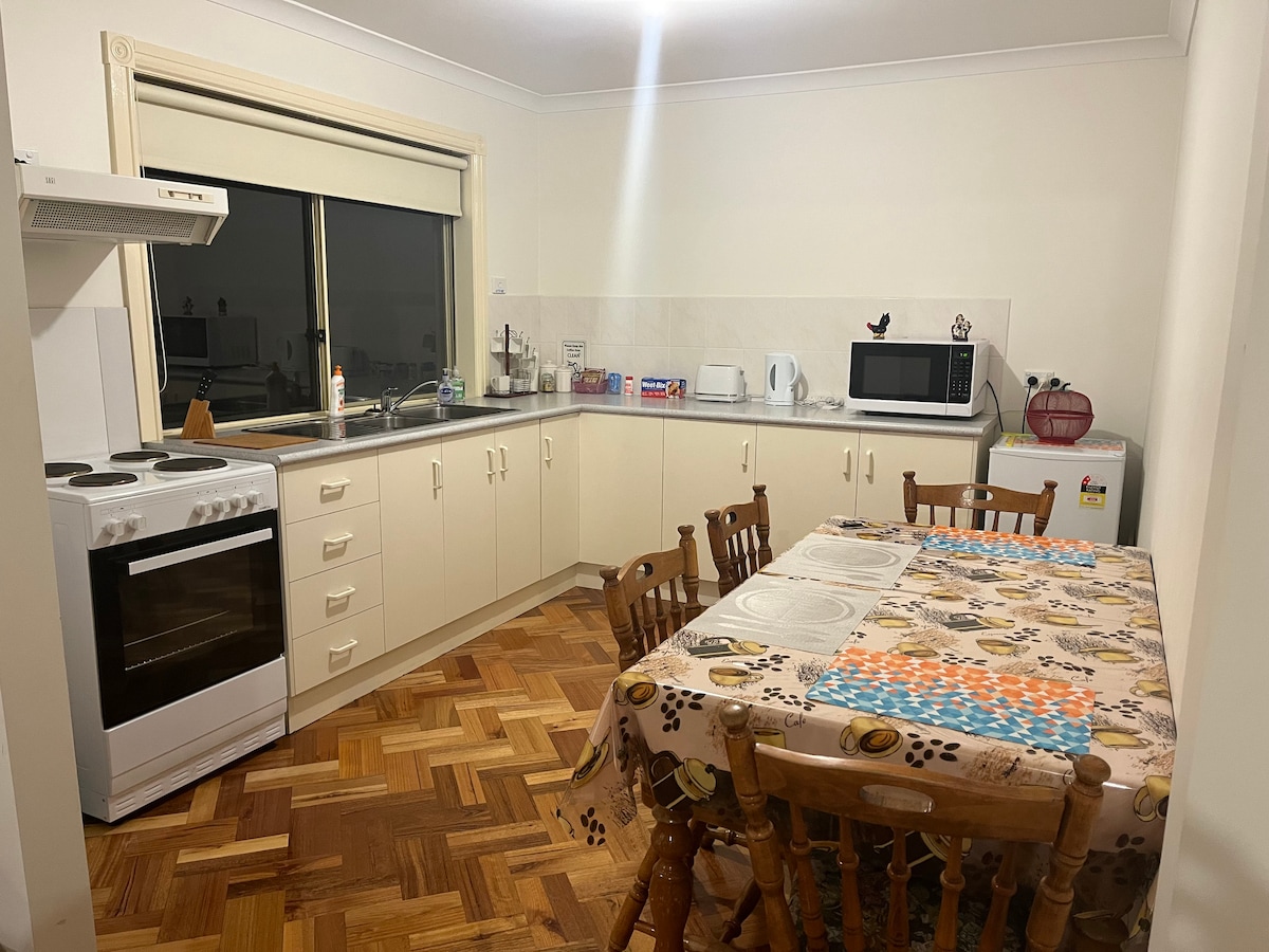 The bungalow is at the end of my driveway and accessed by walking through double gates. Security lights will come on after dark to guide you. Full en suite with fresh linen and toiletries. Fridge, microwave,toaster, split system air conditioning. Situated in a garden setting.