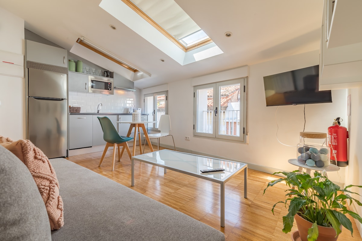 MADRID MONKEY FLAT - Discover old Madrid from the comfort of a remodeled bright quiet attic penthouse of 100 m2 iin a reformed historical building. Ideal for teleworking and perfectly located, it is a walk away from museums, Atocha train station, subway stations, restaurants and vibrant plaza Santa Ana, which offers tapas’ bars and varied entertainment and fun nightlife, features a lift, a 20 m2 private terrace and air conditioning, great wifi and streaming tv (Netflix)