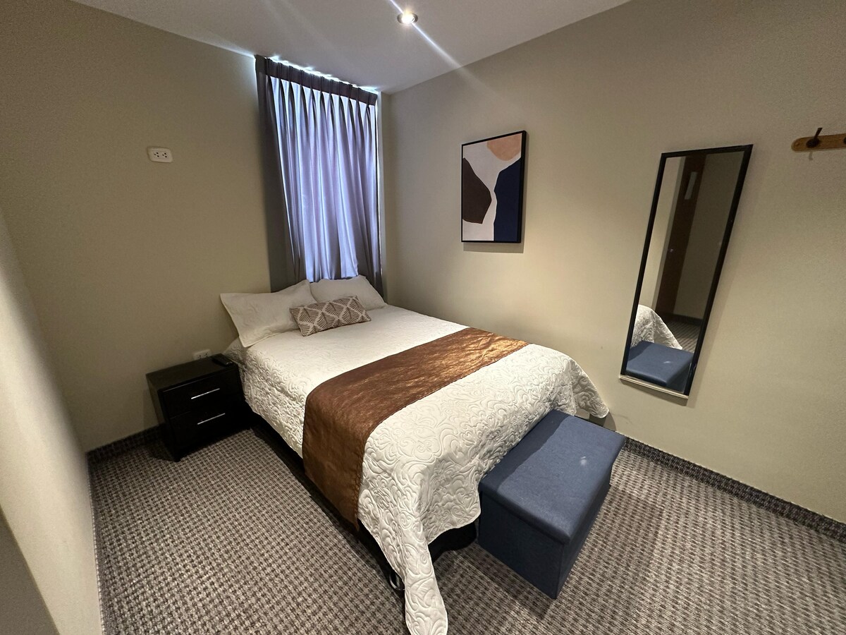 Hospédate en una habitación cómoda para 2 personas en el centro histórico de Cajamarca, a solo 5–7 minutos a pie de la Plaza de Armas. Comparte baño únicamente con una habitación adicional, siendo una opción práctica para quienes priorizan buena ubicación y presupuesto sin sacrificar tranquilidad. Ideal para turistas y profesionales en comisión. Contamos con tarifas especiales para estadías semanales y mensuales.