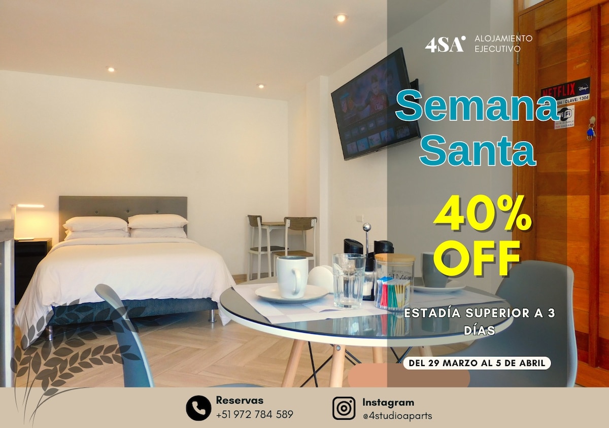 *Praegu on sõidukite liiklus kahe kvartali pikkusel teelõigul tee remondi tõttu piiratud.* Moodne, mugav, vaikne ja turvaline korter, täielikult sisustatud, ideaalne äri- või puhkusereisideks. Asub peateede lähedal, sooja vee ja kiire WiFi-ga. Asukoht (ligikaudne sõiduaeg): Lennujaam: ~5 min MegaPlaza: ~4 minutit Open Plaza: ~3 minutit Real Plaza: ~10 minutit Plaza de Armas: ~10 minutit Oluline: korter asub teisel korrusel (lifti pole).