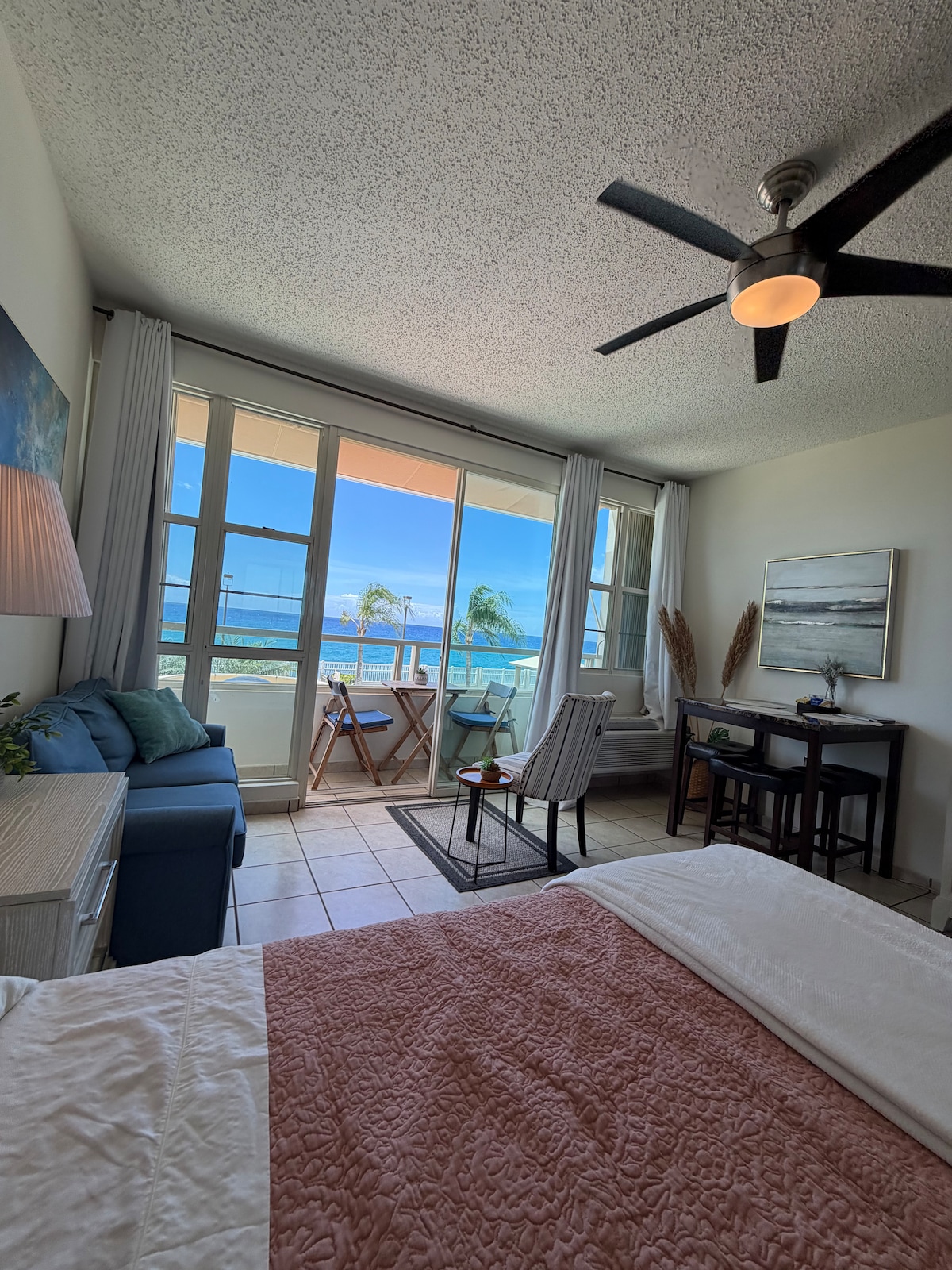 Puhkekeskus vs autentne Rincóni kogemus? Parim mõlemast maailmast: magada kuni 4 inimest selles Deluxe 1-King Bdrm, 1 vann, 3 basseini, Rincón Beachfront Retreat Condo w/ Oceanfront rõdu ja AC. See omapärases Corcega naabruskonnas Rincónis asuv privaatne väravakompleks pakub otsest ööpäevaringset juurdepääsu 2 lehtlale/2 parkimiskohale, 3 basseini. Baarid/restoranid/surfamine/vee- ja õhupoed/mugavuspoed ja palju muud on mõne minuti autosõidu kaugusel. Rinconi elamuse juhend andis kõiki soovitusi. Hiljuti renoveeritud ja maitsekalt sisustatud mugavust silmas pidades pakub see Rincon Beachfront Retreat oma mugava rannikukujundusega kaasaegseid mugavusi, millel on autentne ranniku võlu. See asub ideaalselt, et proovida kõike, mida Rinconil on pakkuda. Alates takistusteta päikeseloojangutest, mida vaadata rõdul, kuni paljude veespordialade hulgast, kuni luksusliku eine nautimiseni ühes lähedalasuvas restoranis ei ole sinu kogemusele meie Rincon Beachfront Retreatis piiratud. Hurricane Maria Update: * Interneti-häirete korral on saadaval hädaolukorra pääsupunkti seade. See seade pakub piiratud juurdepääsu andmetele e-kirjadele, sotsiaalmeediale, muusikale jne * Varem rannale pääsenud värav on rikutud ja praegu asendatud. Lahenduseks on otsene juurdepääs väikesele privaatsele rannale kompleksse ranna küljelt. *** Hispaania keele tõlkimiseks kerige alla* **** KIIRED PÕHIMUGAVUSED: * Köök - täielikult varustatud. * Elu - Diivaniga magamiskohti 2, A.C. * Söömine - laud 4-6 inimesele * Magamistuba - King Bed, A.C. * Rõdu - välilaud 4-le * Suur mitmeotstarbeline laud toolidega (töö-/meigijaam) * Värviprinter - trükkimiseks Bluetoothi või otse kaabli kaudu. * Hi speed WiFi (60/6) * 55-tolline nutiteler (seal on ka põhilised Hispaania kaabeltelevisiooni ja inglise uudistekanalid) * Blu Ray DVD-mängija ja 50+ filmi, mille hulgast valida * Wifi pääsupunkti seade interneti jaoks, kui internet on häiritud. * Äsja paigaldatud telefon piiramatute kõnedega USA-s, sealhulgas Puerto Rico! * Äratuskell laadimispordiga * Laadimisjaam - rahvusvaheliste adapteritega * Jõusaalivarustus * 2 parkimiskohta * 24-tunnine juurdepääs basseinidele * 24-tunnine otsene juurdepääs väikesele privaatsele rannale kompleksi küljelt. *** Üksikasjalik läbikäik *** KÖÖK; Täielikult varustatud Külmik on filtreerinud vett ja jääd. Kõiki leitud maitseaineid saab kasutada. Elektrilise pliidiplaadi alt leiate 3 sahtlit; Ülemises sahtlis on kohv, kreem, suhkur, splenda, kohvifiltrid, smuutisegisti ja erinevad maitseained teie mugavuse huvides. Keskmises sahtlis on täiendavad käterätikud, saran wrap ja foolium. Alumises sahtlis on peamised potid, kastrulid jne. Kahel parempoolsel kapil on riisipliit, rösterahi jne. Töölaualt leiate konvektsiooni/ mikrolaineahju. Mikrolaineahju kasutamisel kasutage kaasasolevat plastikust pritsmekatet. Kohvimasin on sellest paremal. ELU- /SÖÖGITUBA - KAASAEGSED mugavused: 55-tolline Smart TV, 1 väike välistingimustes kasutatav Bluetooth-kõlar, 1 siseruumides kasutatav Bluetooth-kõlar, mitme pistikupesaga laadimisjaam, rahvusvaheline pistikupesade muundur, traadita värviprinter, WiFi-võrgu hädaolukorra kuumkohtseade, kliimaseade ja seinaga juhitavad laeventilaatorid. SÖÖMINE; Suur ovaalne söögilaud mahutab mugavalt 4 inimest. Magamistoa laua/ töökoha juures asub 2 sobivat tooli. ELUTUBA; Polsterdatud läbilõige, mis muudab hõlpsasti kaheinimesevoodiks (mahutab 2 täiskasvanut). Enamik ööd mu poiss ja mulle meeldib jätta see ümber ekstra mugavuse vaadates televiisorit. Voodi pikendaja tõmmatakse kergesti diivanilt välja. Toolil on madratsi kate, voodipesu, padjad ja tekk teie mugavuse huvides. MAGAMISTUBA; Magamine selles kuninga suurusega voodis on pluss pärast pikka päeva rannas ja vaatamisväärsusi. Sellel on keskmise tugevusega madrats, millel on geelvahtkate, mis tagab enamiku liiprite jaoks õige tasakaalu. Kõrgus on kõrge, kuid minu 5-jalane raam armastab seda tunda. Toas on konditsioneer ja seina juhitavad laeventilaatorid. Voodi mõlemal küljel on mugavuse huvides kaks abilauda ja lampi, mis pakuvad hoiuruumi raamatute lugemiseks jne. Äratuskell on varustatud 2 integreeritud USB-porti lihtne telefoni laadimine. Mulle isiklikult meeldib täielik pimedus.. mis võib olla, kui avate aknad ja libistate ettevaatlikult seestpoolt suletud tormi aknaluugid. Ole sõrmedega ettevaatlik. Ära lase neil vahele jääda! Samuti saate alarmi kuvamise välja lülitada, vajutades kella tagaküljel vastavat nuppu. KUMMUT; Suur kummut mööda seina on palju rohkem ruumi. Alumises parempoolses 2 sahtlis on geelkate ja kuninganna suurusega õhkmadrats juhuks, kui külalised eelistavad seda elutoa sektsionaalsele magamiskohale. Kummuti kohal oleva nutika televiisori kaugjuhtimispult asub vasakpoolses kummuti ülemises sahtlis. KAPP; Seinast seina peegeldatud kapp sisaldab terviklikku kapisüsteemi, mis võimaldab rohkem ruumi. Mul on praegu mõned isiklikud esemed alumises 2 sahtlis.. välja arvatud need, palun kasutage kõiki teisi tühje sahtleid vastavalt vajadusele. Kapi paremal küljel on kaasaskantav triikimislaud rauaga, palju riidepuid ja lisavoodipesu, voodipesu jne. Kapi vasakul küljel leiate kõik rannavajadused alates rannatoolidest kuni rannajahuti, vannirätikute, rannarätikute ja palju muud. TÖÖLAUD/ MEIGIPUNKT; Suur laud ranna poole on suurepärane töö- või meigipunkt. Pastapliiatsid ja märkmepadjad asuvad õiges sahtlis. Siit leiate printeri jaoks lisapaberit. Meeldetuletus: traadita printer asub elutoas. TREENINGVARUSTUS; Voodi jalamil leiate 1 suure ja 1 keskmise hoiukasti. Suur on räpaste rätikute jaoks. Keskmine rind on täis kodus jõusaal seadmed, sealhulgas kaalud, ab rull, jooga matid, treening bänd on jne Raskemate raskuste komplekt on kas rindkere sees või AC all, kuna need on eriti rasked/ mahukad. VANNITUBA: Sisaldab automaatseid kehapesu- ja šampoonidosaatjaid suures p