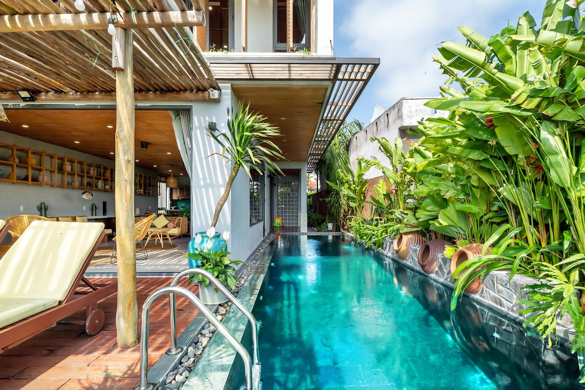 Serene Retreat 4BRs w/ Pool - 6' to An Bang Beach