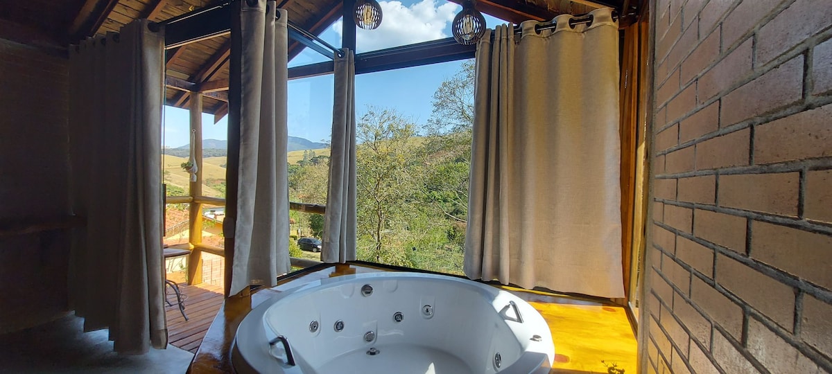 Seed on paariks mõeldud mägisuvila. Puude varikusse ehitasime diferentseeritud mägisuvila, kus on mugavus, praktilisus ja uskumatu vaade Serra da Mantiqueirale. Varustatud kaheinimesevoodiga, wifi optilise kiu, nutiteleri, kütteseadmete ja miniköögiga (2 põletiga elektripliit, mikrolaineahi, minibaar ja söögiriistad). TÕSTA ESILE vesivahendit, kust avaneb panoraamvaade Serra da Mantiqueirale.