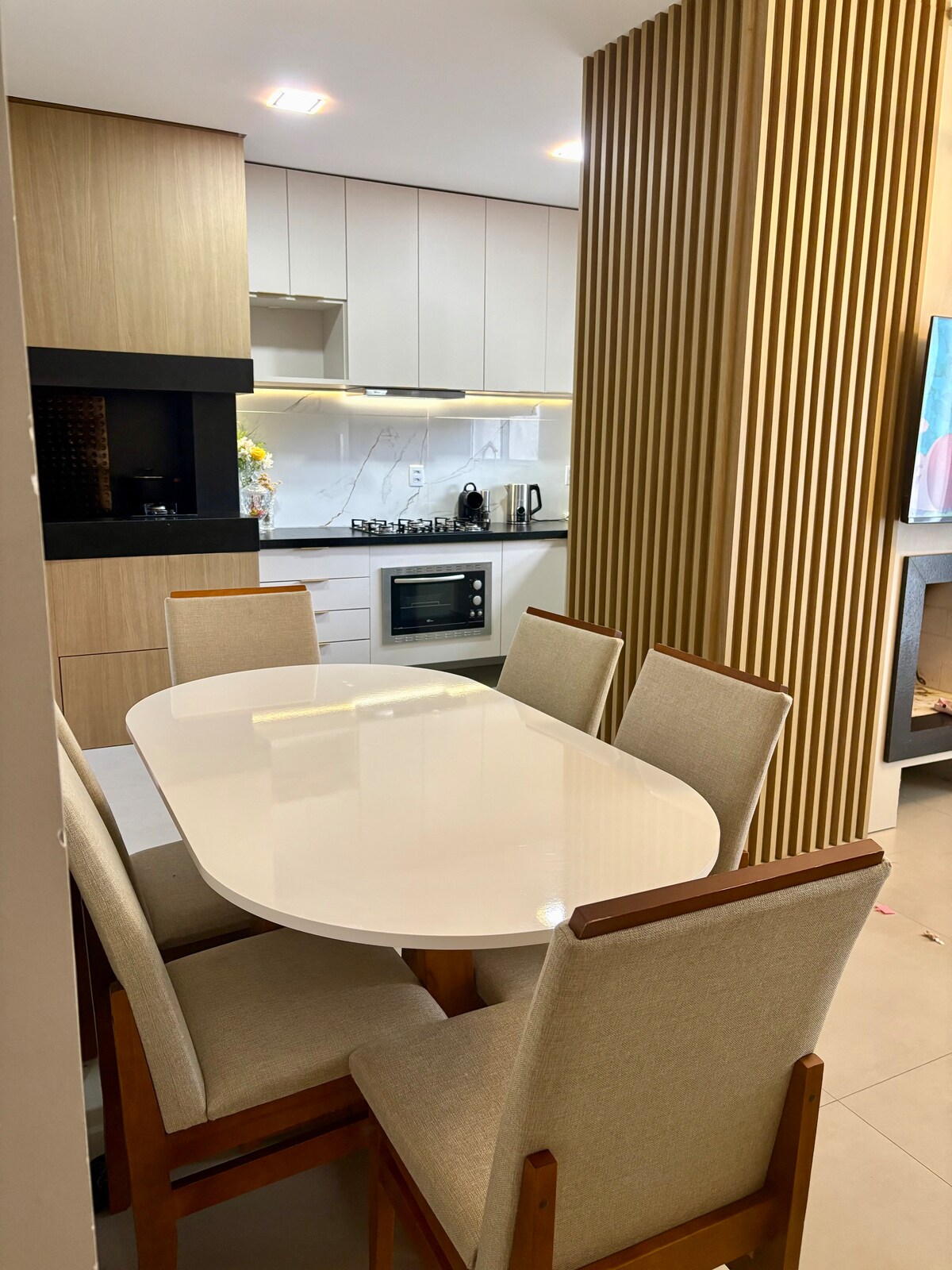 Suurte ja õhuliste tubadega kaunistatud maja. 4 magamistuba ;2 vannituba ja 2 Ameerika sviiti koos Splitiga, 4 kaheinimesevoodit ja 2 üheinimesevoodit, 4 vannituba. Tuba kaminaga integreeritud keskkondade, elu-, söögi- ja köögiga. Dois Grandes diivanid, 65-tolline kaabeltelevisioon, alexa, mikrolaineahi, elektriahi, chopp tower. Suurepärane muru välise grilliga, mis on samuti grill ja elareira, aiamööbel ja võrkkiik. Kõik selleks, et saaksid nautida sise- ja välisruumi, tule ja vaata seda.