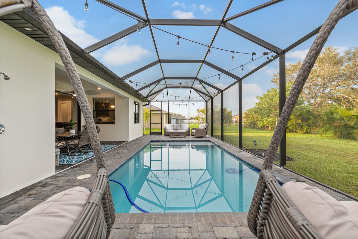 Swap your routine for something better. This bright, spacious Cape Coral home is designed for the kind of vacation you'll actually talk about--long poolside mornings, cookouts on the Blackstone, game room battles, and evenings gathered around the outdoor fireplace under the Florida sky. With nearly 2,000 sq ft, three bedrooms, a den and three full baths, there's room to spread out and still come together. We guarantee, you'll LOVE the Luxe EsCape!