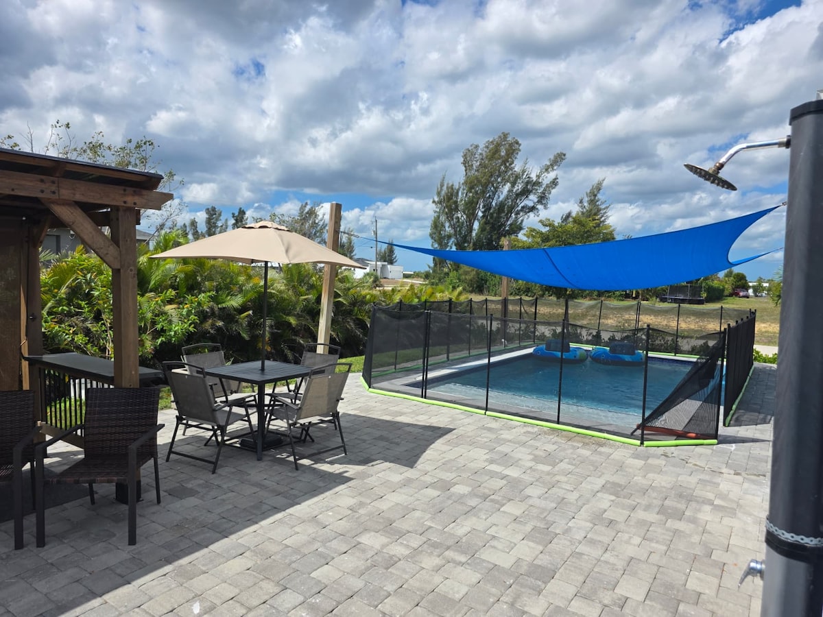 Selles külalistemajas on kõik, mida vajad oma puhkuseks, see asub kesksel kohal, rahulikus ja turvalises naabruskonnas ning seal on väga hästi jaotatud ruum. See asub mõne minuti kaugusel Caloosahatche jõest ja Mehhiko lahe ilusatest randadest. Seal on jalgrattad, kajakid, vihmavari, rannatoolid, õngeridvad ja muud esemed, mis parandavad sinu puhkust. See on ka väga lähedal väga soovitatud restoranidele, kuulsatele kauplustele (walmart,Publix, McDonald) ja muudele olulistele kohtadele.