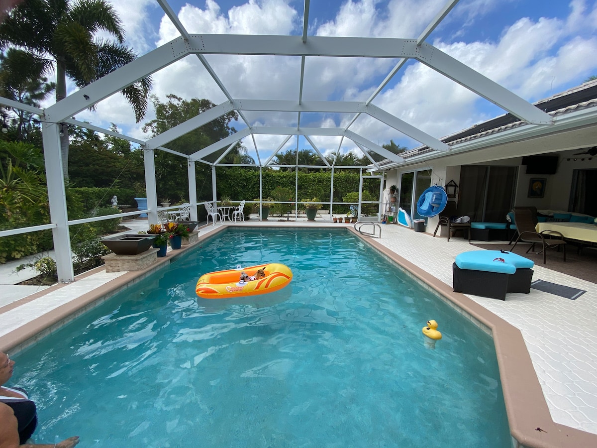 Võta rahulikult selles ainulaadses ja rahulikus puhkepaigas, kus on tohutu botaanikaaed (fotodel on näha taimi meie poole aakri suurusest aiast), veevaated ja juurdepääs basseinile! Oleme 20-35 minuti kaugusel ookeanist ja veel vähem ilusast jõest ja ühendavatest kanalitest. Sõida kajakiga mööda imeilusaid kanaleid ja otse Caloosahatchee jõele! Vaata lamantiini, delfiine, alligaatoreid ning hulgaliselt linde ja muud elusloodust! Palun ära sisene naabruses asuvatesse majutuskohtadesse.