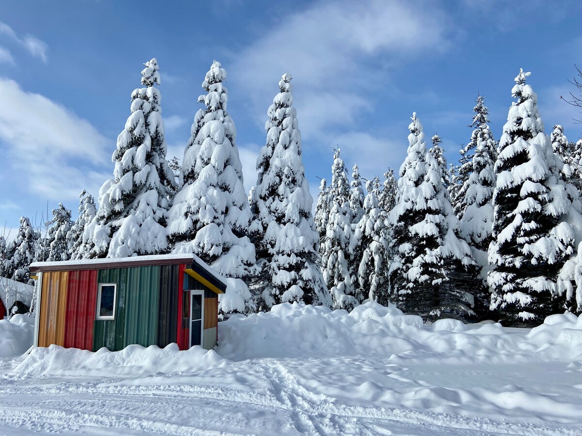 Rustic, solar bunkhouse - The Roost! Glamping at it's best. Get away from it all in this simple bunkhouse made with recycled materials and wood siding from trees milled on site. Large window, covered deck, outdoor seating and fire ring give you space to commune with nature. With a full and twin mattresses, it is Bring Your Own Bedding so come with sheets, pillows and/or sleeping bag. The structure is heated. Private outhouse near-by, bring a flashlight. Come immerse in this working farm