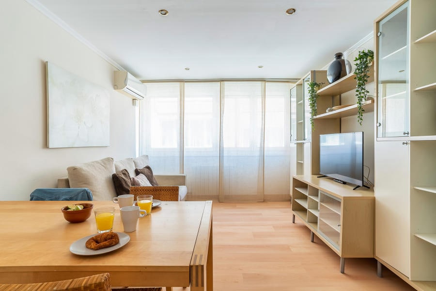 Stylish apartment on a semi-pedestrian street in the iconic Gracia neighborhood, 800 meters from Sagrada Familia and Hospital de Sant Pau, and a 20-minute walk to Parc Güell or Passeig de Gracia. Comfortable, quiet, and elegant, the apartment is fully renovated. It features a queen-size bed, high-quality linens and towels, AC, kitchen, and sofa bed. Enjoy 2 SmartTVs (Netflix, HBO...) and high-speed Wi-Fi. This cozy apartment offers access to a beautiful, dynamic neighborhood from a serene street