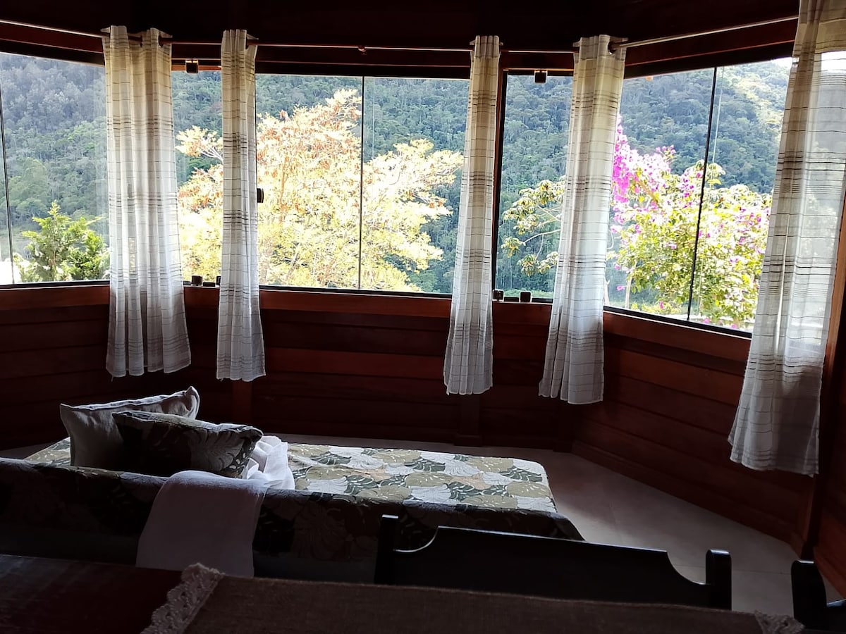 Mägisuvila, kust avaneb imeline vaade Teresópolise mägedele ja mis on ideaalne loodusest ümbritsetud lõõgastumiseks! Seal on 3 sviiti, kaminaga elutuba, võrkkiigega rõdu ja gurmeepiirkond koos grilliga, pitsaahi ja mängudega. Seal on mullivann ja saun ainult külaliste kasutamiseks. Enne broneerimist teata külaliste arv. Lisatasu iga lisakülalise eest alates kolmandast isikust. Oleme valmis sind vastu võtma.