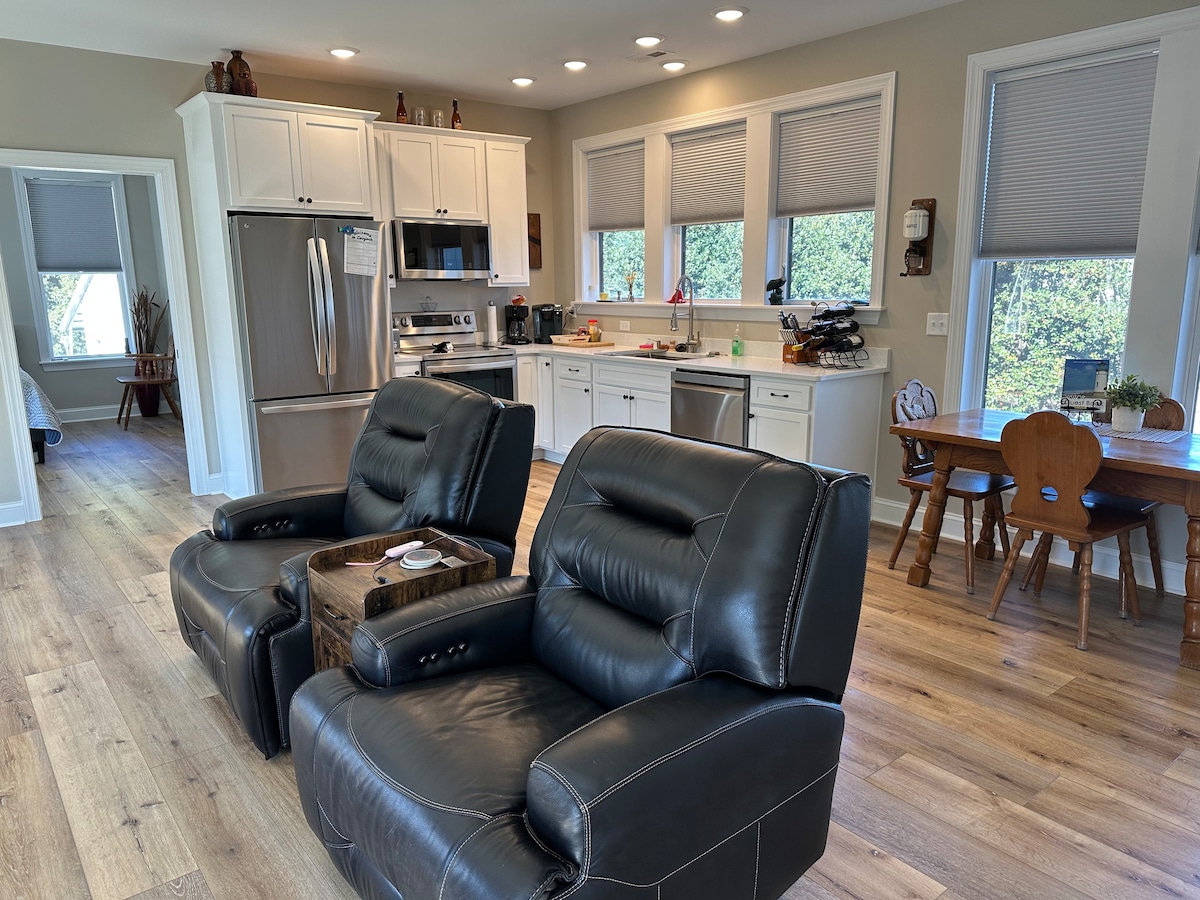 „Salt Suite Cottage“ Lõõgastu selles rahulikus ja stiilses majutuskohas. Meie väike ainulaadne majutuskoht asub suurepärases kohas, et näidata erinevaid maastikke, mida see piirkond pakub. Maja võimaldab sul puhata Kitty Hawk Village 'i vaikses metsaalal pärast kiiret päeva rannas. See uus hoone on umbes 550 ruutjalga privaatset, avarat eluruumi, kus on mullivann ja terrass, kust avaneb vaade majutuskoha taga asuvale rohelusele. See on luksus! * Ainult 2 külalist, külalisi pole