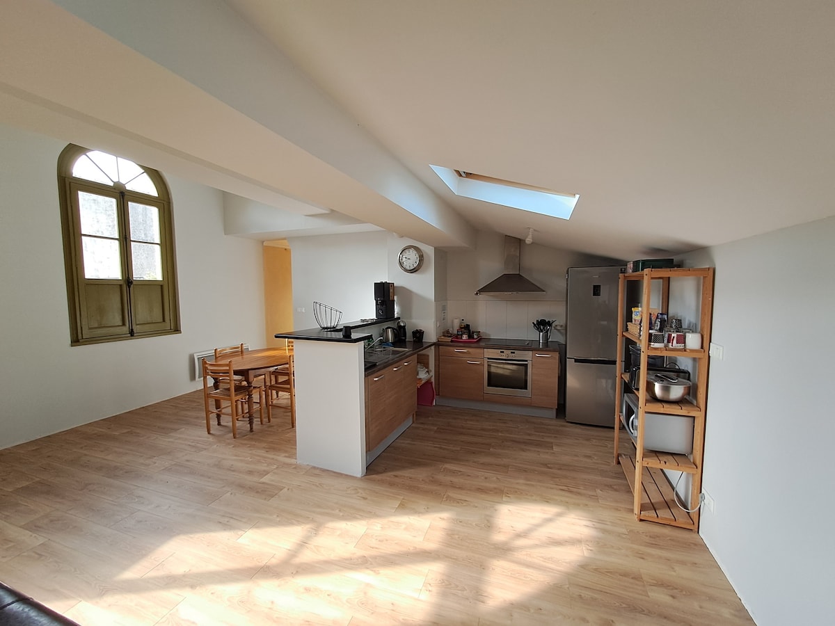 80 m2 korter terrassi ja garaažiga (jalgrattad või mootorrattad) suurepärase loetletud hoone teisel korrusel. 1 magamistoaga voodi 160 cm suuruses 1 magamistoaga voodi 140 cm Suur elutuba Televiisor, Varustatud köök Pesumaja Terrass asukohas Hoovikollektiiv Jalgratta- ja mootorratta garaaž Tasuta parkimine Koristamine ei ole tasuline, selle eest tuleb teha sina (või võimalik lisatasu) 150 m kaugusel suurest basseinist ja kesklinnast, 45 minuti kaugusel Toulouse 'ist, Carcassonne' ist ja Castresest, 5 km kaugusel kiirteest
