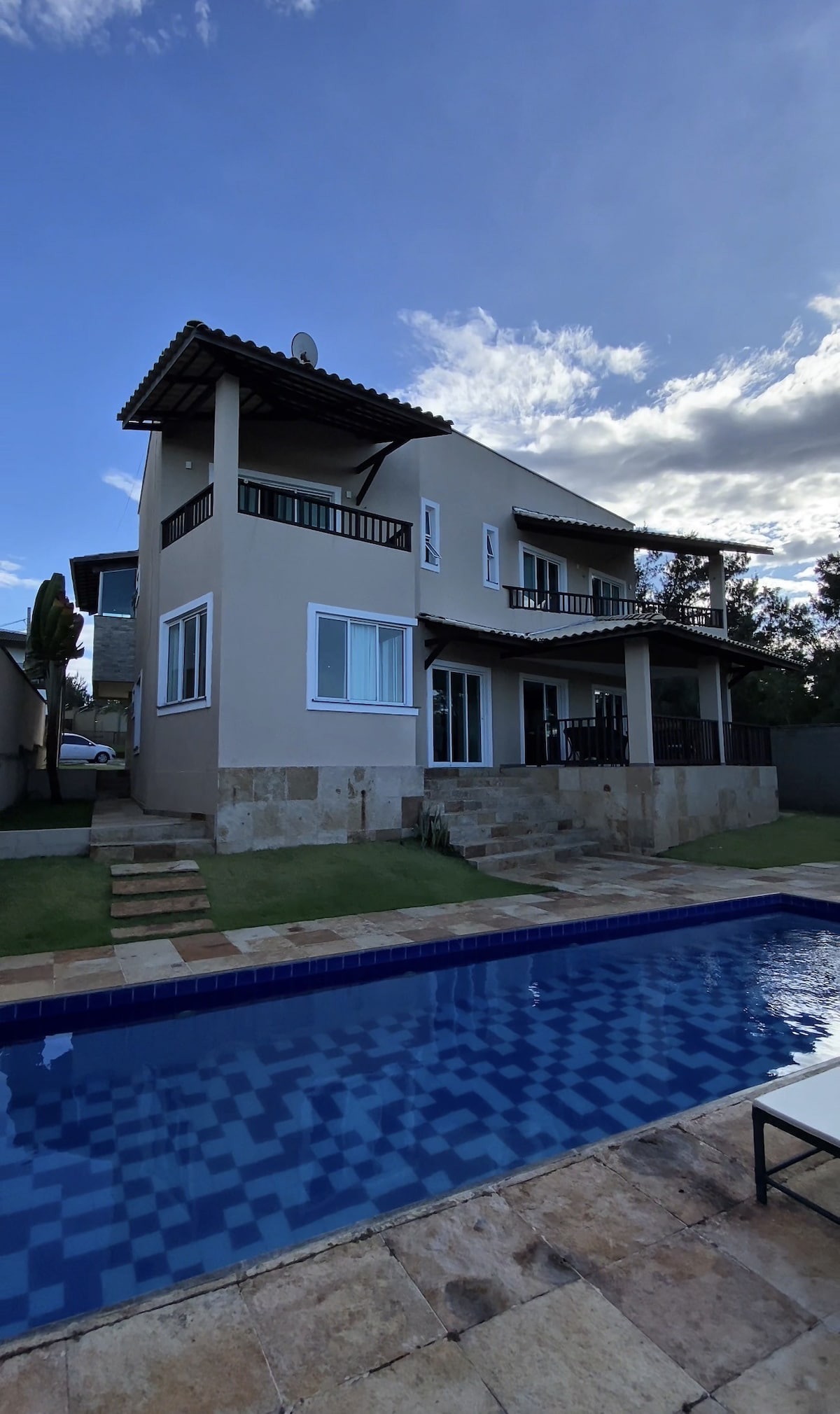Maja 6 sviidiga, 1 lisatuba, söögituba, elutuba, varustatud köök ja suur grilliala. Meil on suur aed, kus on ruumi tuulelohe majutamiseks. 6 voodipesuga, köök, grillimisala, bassein ja suur koht lohe jaoks. Voltagem: 220 V