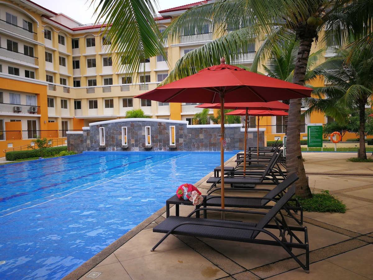 Hubane ja lõõgastav täielikult sisustatud 2 magamistoaga puhkekeskuse korter, kust avaneb suurepärane vaade, rõdud, kiire wifi, sooja vee dušš, täielikult varustatud köögirajatised, pesumasin, juurdepääs basseinidele, jõusaal, korvpalliväljak, laste mänguväljak ja tegevusruum suurepärase hinnaga SM Seaside Malli lähedal, restoranid ElCorso ja kesklinn.