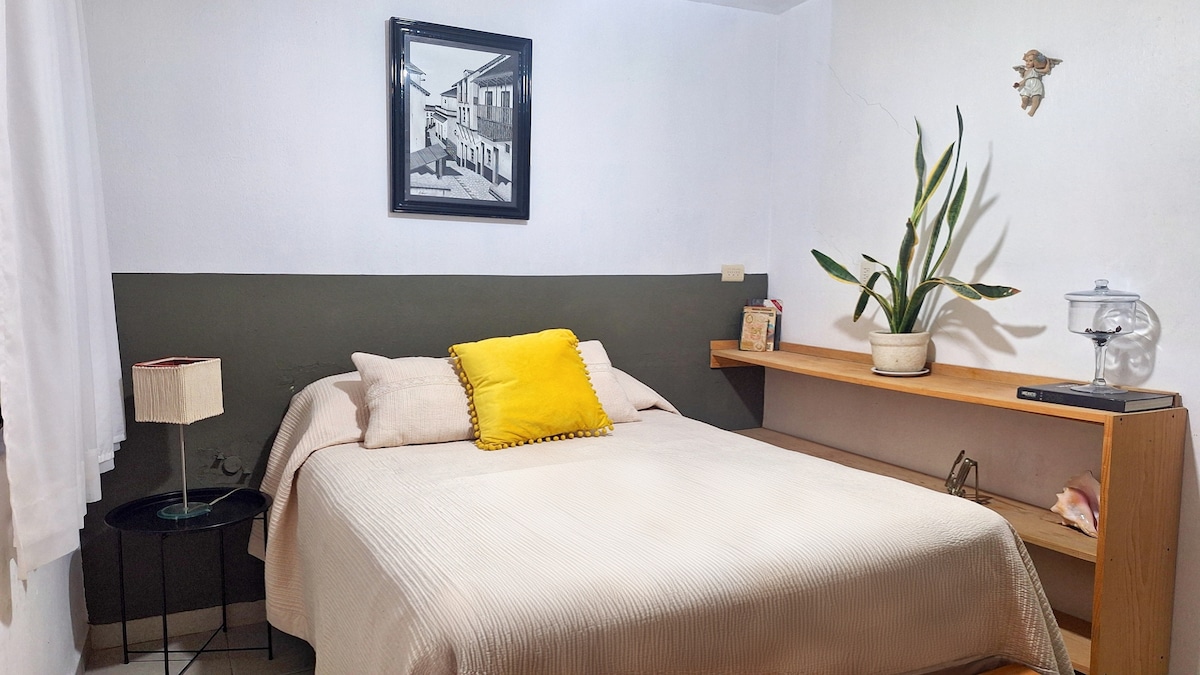 Kööginurgaga Executive-sviit ööpäevaringse valvega suletud kogukonnas. Ideaalne ärireisijatele ja paaridele, kes otsivad privaatsust, ohutust ja mugavust Galerías Celaya (5 min) ja kesklinna (10 min) lähedal. Sisaldab kiiret WiFi-ühendust, parkimist, võtmeta digitaalset sissepääsu ja pesupesemisvõimalusi.