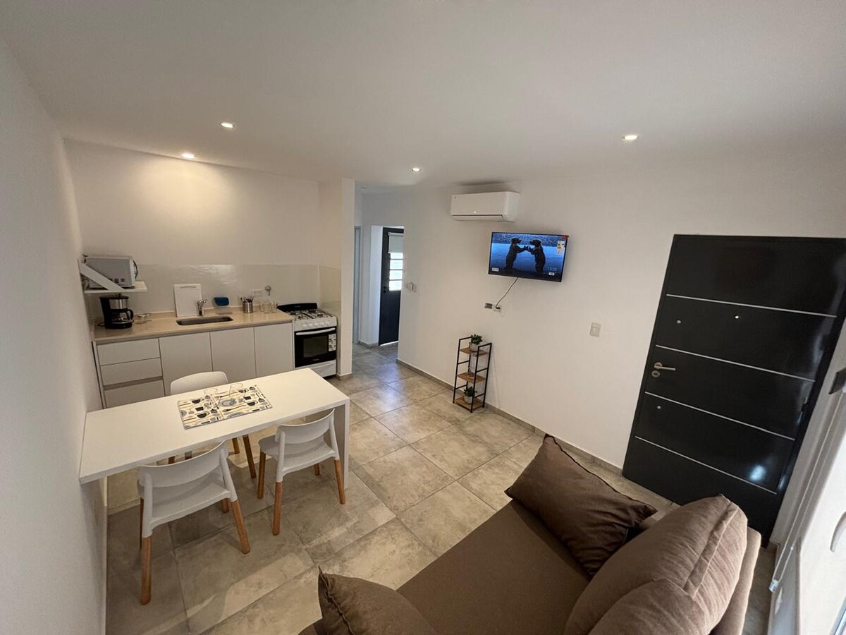 Disfrutá de la sencillez de este alojamiento tranquilo y céntrico, cerca de los centros de salud mas importantes de Neuquén a pocos minutos de los centros comerciales. instalaciones de categoría, un Monoambiente con todas las comodidades, calefacción por losa radiante, cama de dos plazas y un sofá cama , televisión de 43" con cable y servicios prepagos, wifi de muy buena velocidad y todo el equipamiento para que te sientas cómodo en tu estadía.