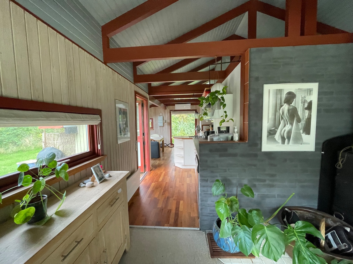 Häirimata pärl vee ääres, supluskai ostud, kohalikud turud, talumüük ja armas ümbrus. Maja on võluv ja täis head energiat ja maitsvat õhkkonda. Kogu majas on suured põrandast laeni ulatuvad aknad, kus päevavalgus soojeneb ja sisse voolab. Maja elutoast on suur terrassiuks terrassini, kus saab päikest nautida kogu päeva. Krunt on 1700 ruutmeetrit, nii et majas on palju rohelist aeda, mida saab nautida. Rand on vaid 800 m kaugusel