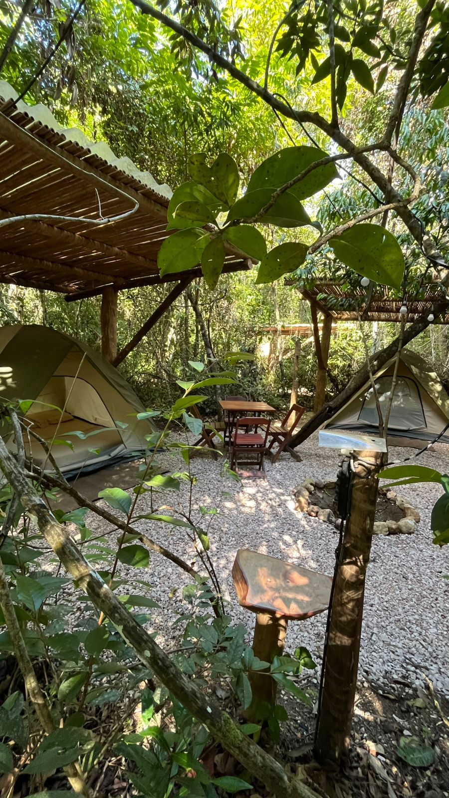 Uma experiência incrível e diferente de dormir e acordar em meio a uma abundante Natureza e seus sons, ao lado de nosso paradisíaco rio de pedras. Nossa estrutura inclui uma barraca Quechua completa, em um tablado suspenso, com vista para o rio. Além de possuir banheiro, cozinha e restaurante nas áreas superiores de nossa ecofazenda. O Bosque onde está montada essa barraca, fica em um local fica mais isolado do restante da fazenda (200mt).