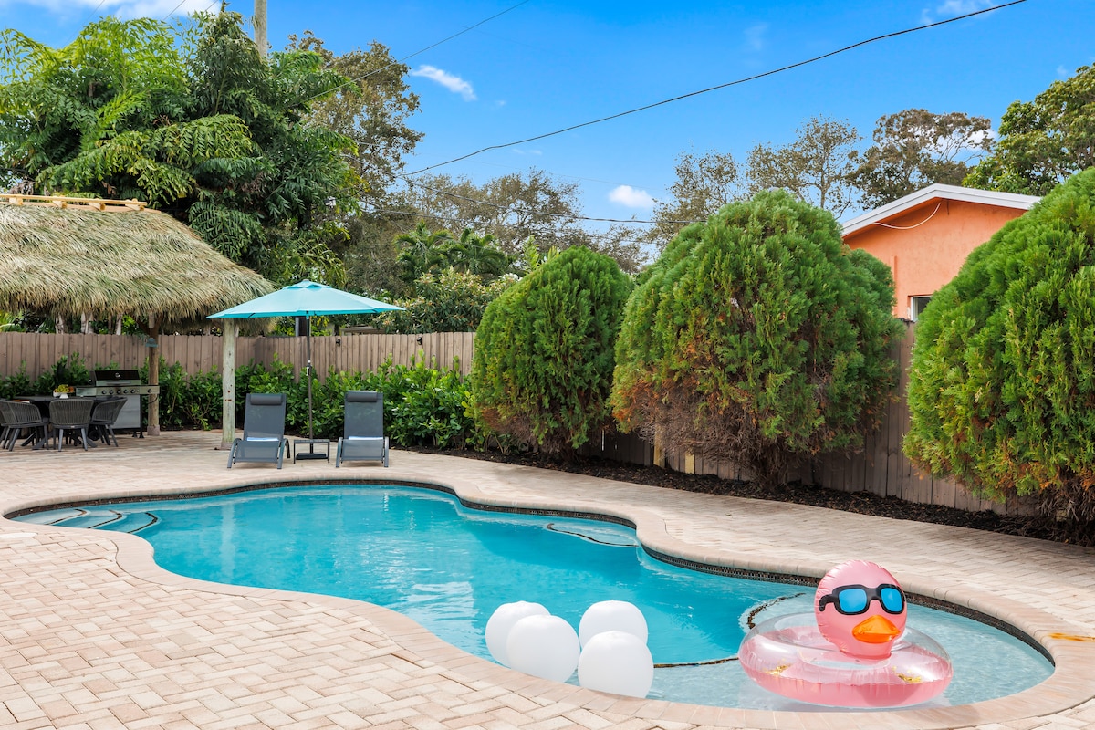 Avar, uuendatud majutuskoht, mis on mõeldud mugavaks ja ühenduseks. Lõõgastu oma privaatses basseinis, naudi filmiõhtuid 75-tollise teleriga või grillita tarastatud tagahoovis. Kolme magamistoaga (2 king-suuruses, 2 queen-suuruses), täielikult varustatud köögi ja avatud planeeringuga sobib see ideaalselt peredele. Turvaline ja vaikne naabruskond randade, parkide, FAU ja kesklinna lähedal — koht, kus igaüks saab lõõgastuda. Ideaalne asukoht