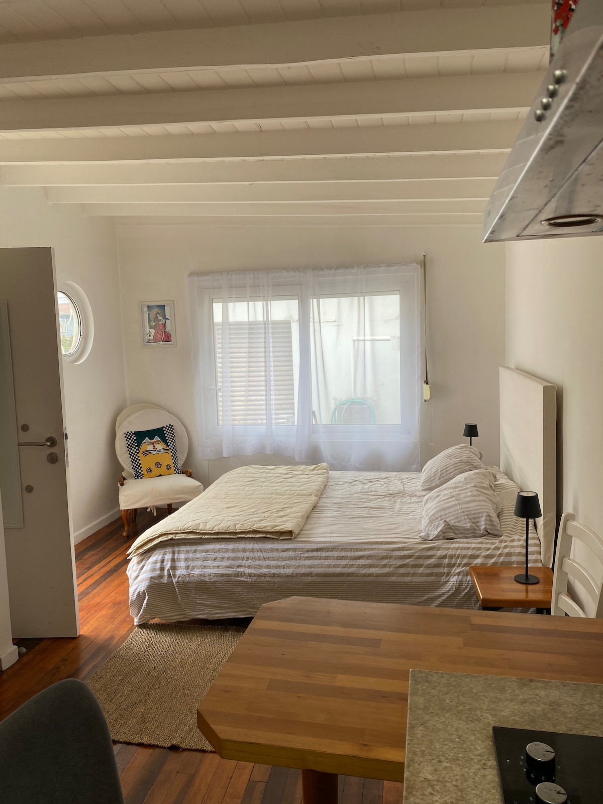 Kaheinimesevoodiga tuba, privaatne vannituba ja privaatne köök, aken päikesevalgusega, wifi ja soe vesi. Supermarketid ja liikumine on väga lähedal. Parkimine väljaspool kinnisvara. NB! Turvakaalutlustel ei aktsepteerita inimesi, kes ei ole broneerimise ajal märgitud või erinevad esimesel päeval sisenenud inimestest.