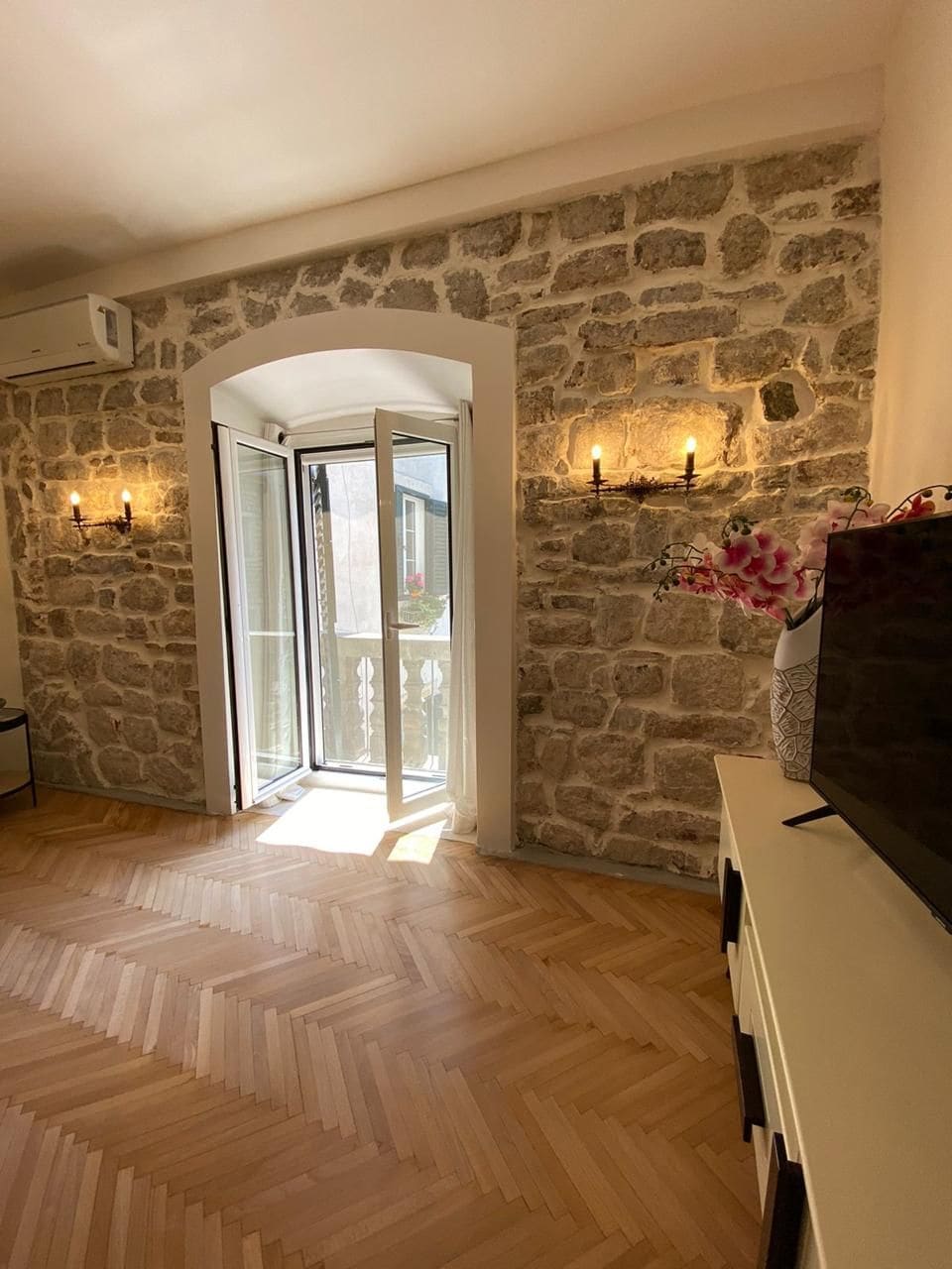 Astu meie valgusküllasesse maalilisse ühe magamistoaga korterisse Kotori vanalinna iidsete müüride vahel. Stiilne ja stiilne ning pakub hubast puhkust keskaegse kivimaja 3. korrusel. Sukeldu UNESCO kaitstud sarmi, nautides samal ajal kaasaegseid mugavusi. Päikesepaistelisest korterist avaneb hingemattev merevaade koos Kotori lahe, majesteetlike mägede ja ajalooliste linnamüüridega. Koge Kotori ajatu võlu sellest ainulaadsest vintage-punktist, kus ühinevad ajalugu ja ilu.