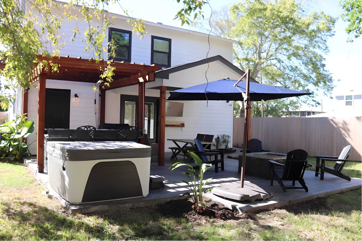 Tule naudi meie tagahoovi oaasi. Oleme täiskasvanutele ainult jagatud tagahoov, valikulised riided, kus saad nautida meie välispalapat koos täisvarustusega köögi, pliidiplaadi, külmiku, kaubandusliku jäämasina, Weberi gaasigrilli, gaasikamin, istumisalaga lõkkekoht, 12 inimese soojendusega spaa, valikuline soojendusega bassein, välivannituba kuuma/külma dušiga. Oma privaatses casitas, täisvarustusega köök, kaheinimesevoodi madrats. Sinu korteris on ainult kaks külalist. Lisakülalisi pole lubatud.
