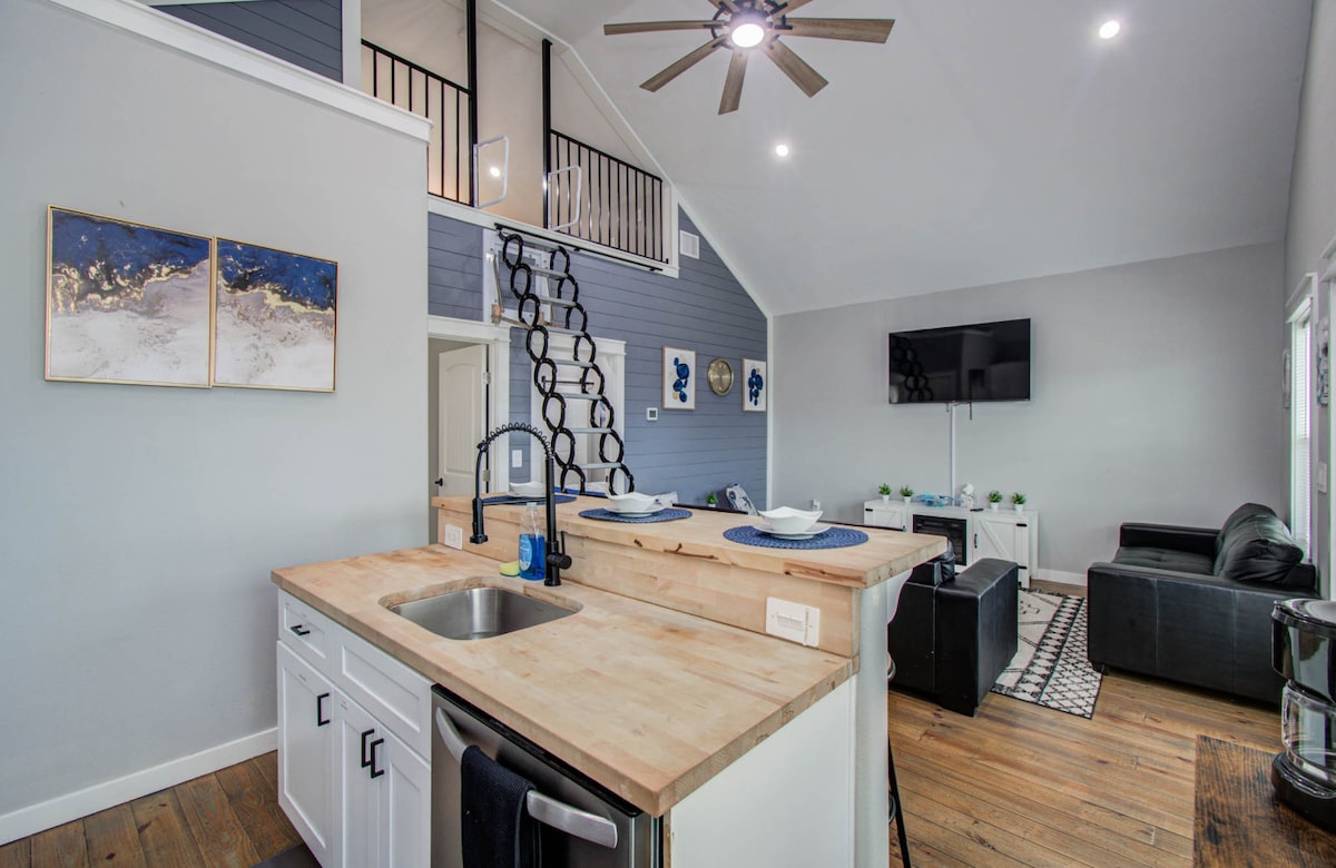 KOGU MAJA: vapustav, arhitektuuriliselt kujundatud järveäärne majutuskoht. Selles uues avaras 2 magamistoa ja 2 vannitoaga majutuskohas on kõik tipptasemel viimistlused ning kaasaegse ja stiilse majutuskoha luksused Kemah Boardwalki lähedal ja vaid 40 minuti kaugusel Galvestoni rannast ajaloolises ja sõbralikus Seabrookis. Lõõgastu ja naudi oma kohvi või mimosat tohutul ümmargusel tekil, kui naudid ilusat päikesetõusu järve kohal. Naudi SUPi, kajakiga sõitmist ja kalapüüki koos lihtsa juurdepääsuga järvele oma privaatselt kailt terrassi all.
