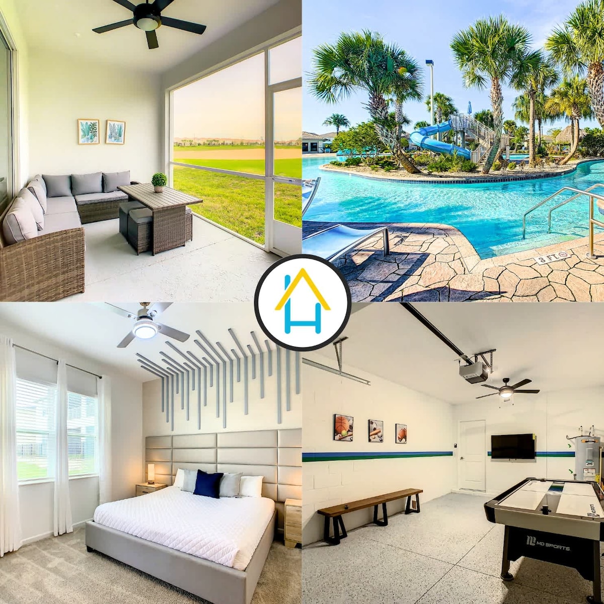 Tere tulemast meie vapustavasse 3 magamistoaga korterisse - ideaalne peredele ja rühmadele! Koge luksust, mugavust ja tipptasemel külalislahkust meie uhiuues 3 magamistoaga 2 vannitoaga majutuskohas, mis on mõeldud kuni kaheksale külalisele. Pole vahet, kas planeerid perepuhkust või puhkust sõpradega, meie avaras puhkepaigas on kõik, mida vajad unustamatuks peatumiseks. Parim asukoht Champions Gate Resortis, vaid mõne miili kaugusel Disney piirkonnast. Tasuta puhkekeskuse stiilis mugavused