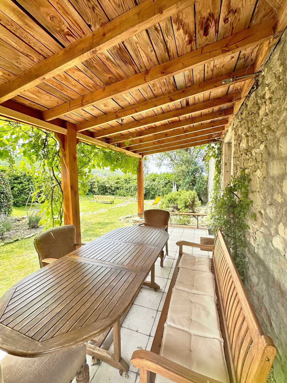 Notre maison d'hôte s'appelle : la ferme saint pierre Drôme. Il y a votre gite et 2 suites de 50 m2. C'est situé dans l'ancienne ferme magnifique du 18e siecle. Votre gîte de 50m2, est complètement autonome ; Vous disposez aussi d'un espace sous une tonnelle pour déjeuner dehors. La piscine vous est accessible, dans un magnifique jardin avec vue sur le Vercors. Des ballades à pieds en sortant et sur le Vercors à 10 mn. Centre village à quelques minutes et gare tgv à 15mn.