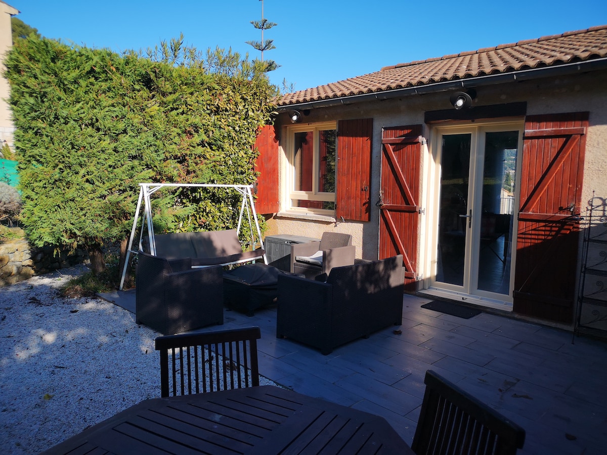 Armas väike võluv ridaelamu, täielikult renoveeritud 47 m2, eramaal 850 m2. See asub vaikses ja lõõgastavas metsapiirkonnas, merevaatega. Lähedal kõik mugavused, 10 minuti jalutuskäigu kaugusel ajaloolisest kesklinnast Vallauris, linnaosa pottsepad ja supermarket, 15 minuti kaugusel kesklinnast cannes, 10 minuti kaugusel rannast ja 30 minuti kaugusel kena lennujaama. Ida-lääne kokkupuude, 2 privaatset parkimiskohta, kauni terrassiga, varustatud wifiga.