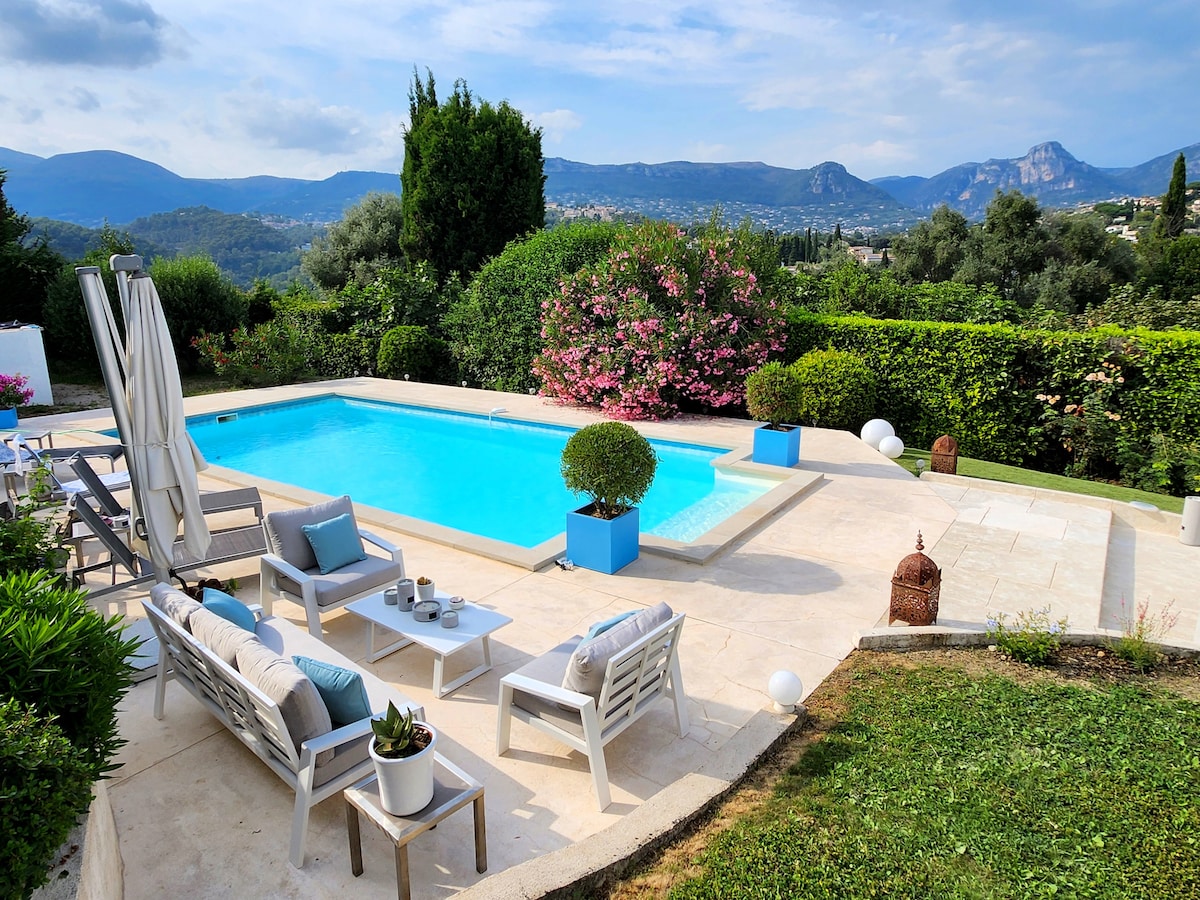 Vence 'i villa - kaasaegne/Boho mägivaade ja bassein