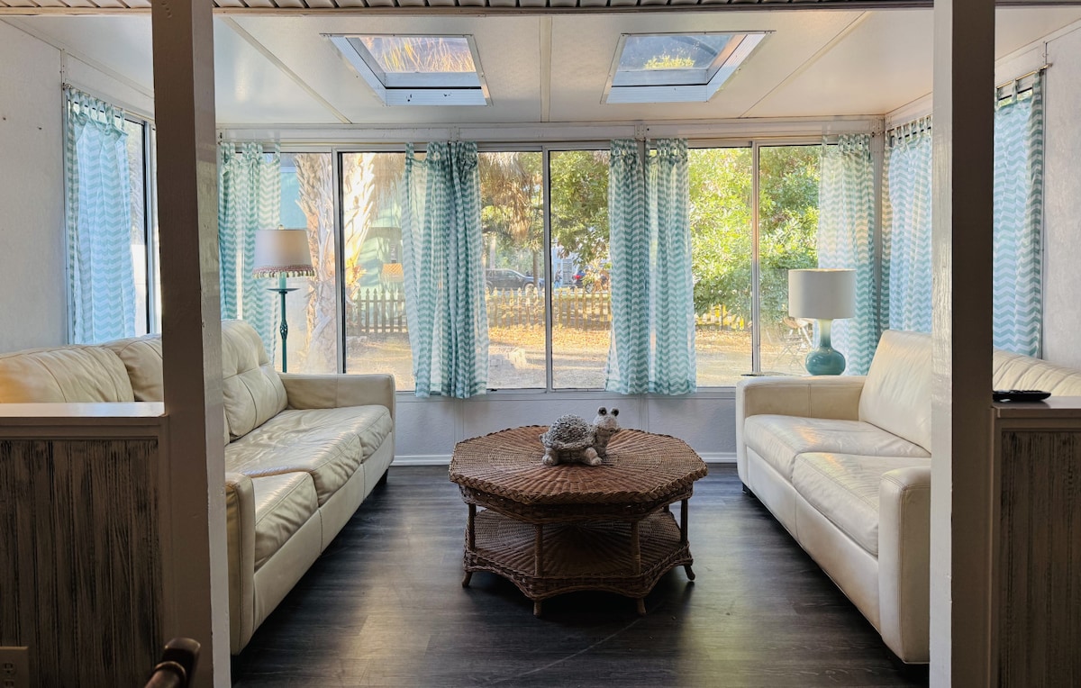 Welcome to your Coastal South Georgia retreat! This charming home combines comfort and the tranquility of nature with lake access! Modern interior includes bright living and dining room areas, and a fully equipped kitchen, and stocked laundry room— everything you need on family trips. Two spacious bedrooms, each with full baths, perfect for families or groups of friends. Treat your family and friends to a day kayaking, and night around the fire pit! This Casita is for memories and comfort!