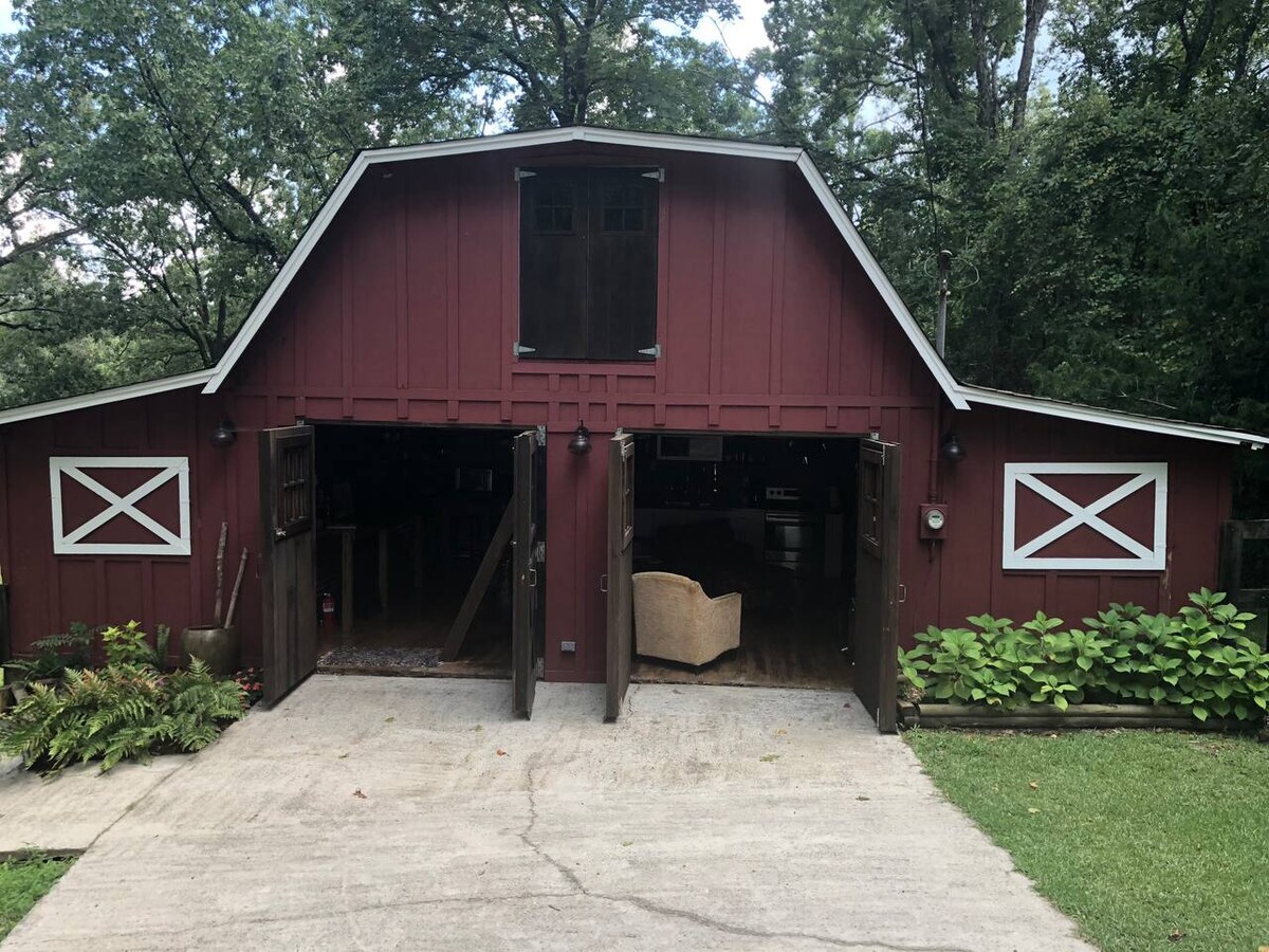 Renovated rustic barn, on 1.3 acres of a post civil war farm. Located 1 mile from Canton Street in historic Roswell. 2 bedrooms with queen size beds Open loft with 2 twin beds 2 full bathrooms, towels, toiletries, full kitchen with dishwasher, microwave, Stove, refrigerator coffee maker, dishes and silverware pot and pans, cutting boards washer, dryer wifi Central heating and air conditioning Smart TV with cable Extra blankets Fire Pit Entry with key pad 3 car parking area for guests