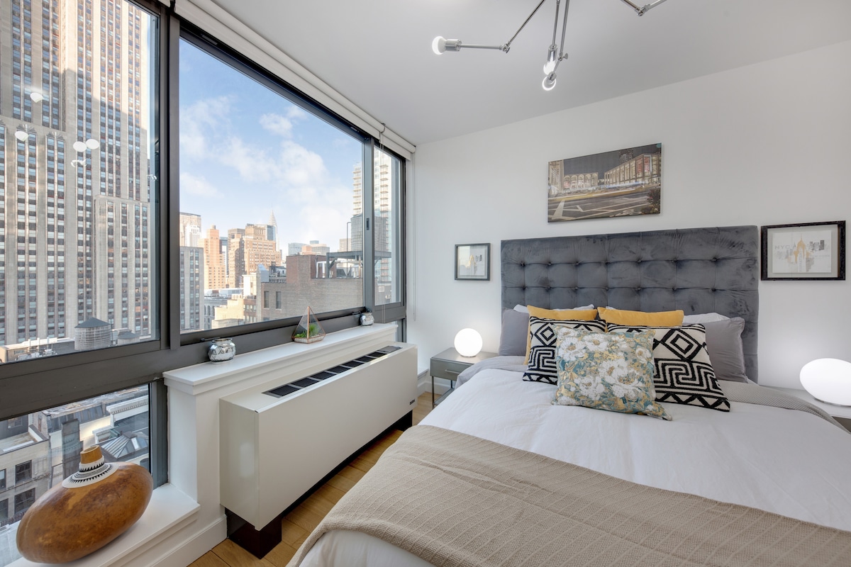 Naudi silmatorkavaid ja fenomenaalseid vaateid Manhattani silmapiirile selles suurepärases 2 magamistoas, kus on korteri viimistlus ja lõualuu langeb põrandast laeaknani, luksuslikus pilvelõhkujaga hoones, kus on ööpäevaringne uksehoidja. Hiljuti renoveeritud ja mugav puhkekoht täielikult varustatud graniidist köögi ja Art Deco vannitoaga. Asub kesksel kohal Manhattani Flatironi piirkonnas, jalutuskäigu kaugusel Times Square 'ist, Madison Square' i aiast, 5. avenüüst ja kõigist New Yorgi maailmakuulsatest turismiobjektidest.