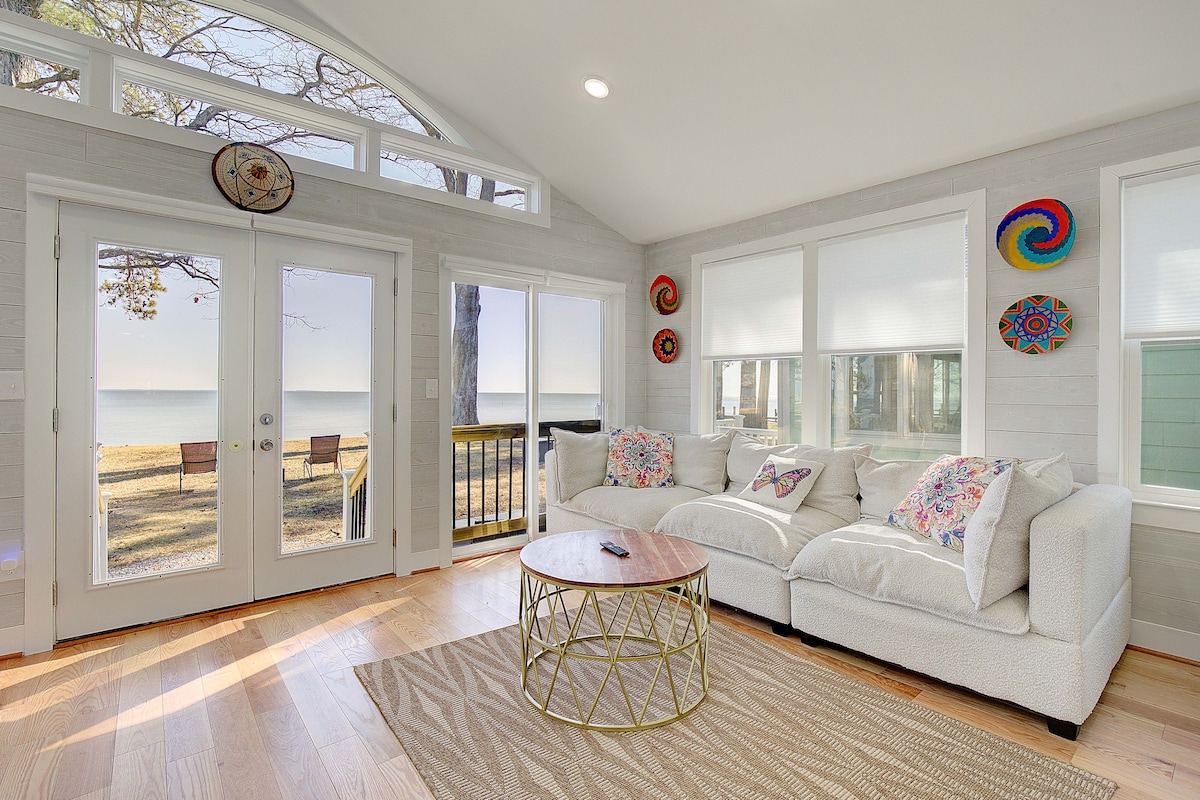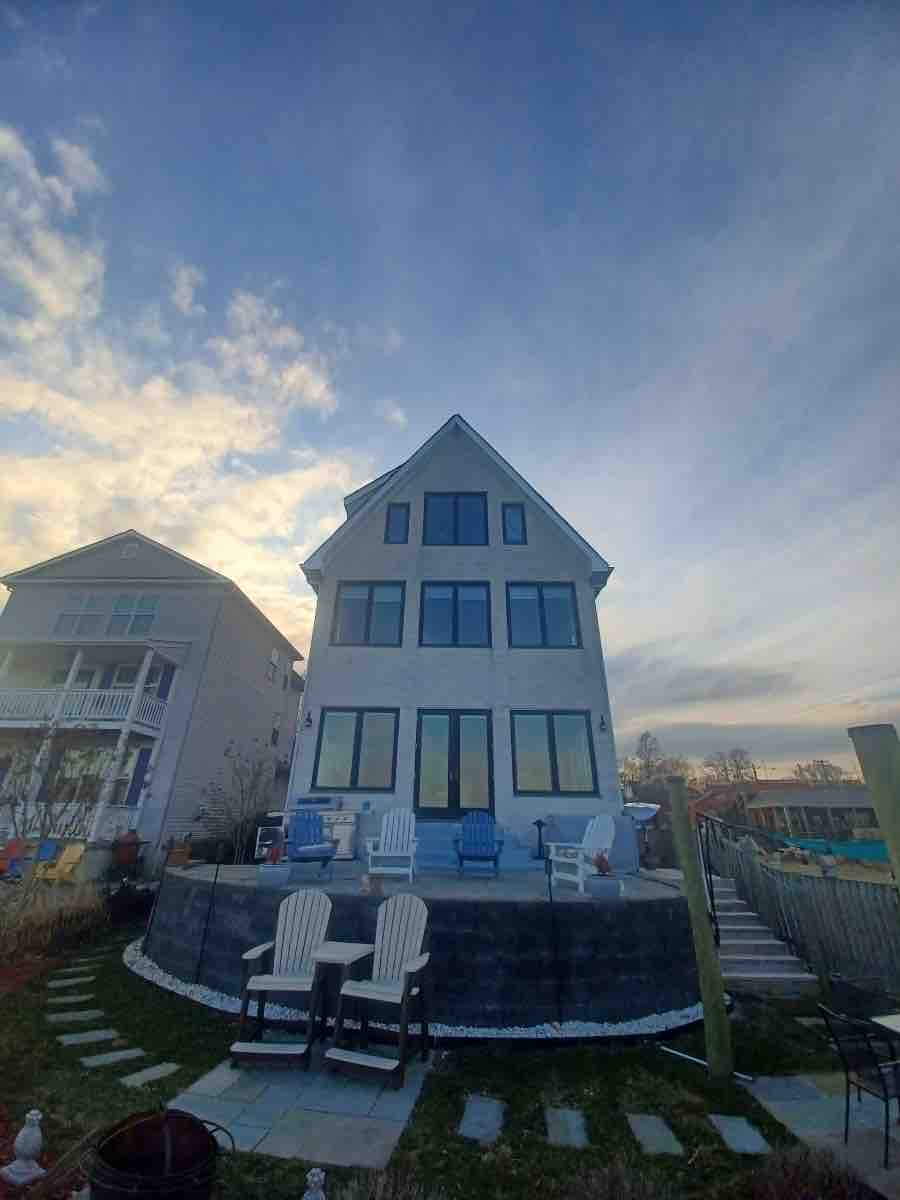 A spectacular, spacious 2 bed, 2.5 bath, pet friendly, waterfront home with stunning, unobstructed views located directly on the Chesapeake Bay. Short walk to beach and pier and several bars and restaurants. A large gourmet kitchen provides everything you'lli need. Workout on the in-house Peleton bike & treadmill. Two cruising bikes are yours to explore town or bike to dinner. Enjoy the private hot tub and 2 gas fireplaces. Solo stove on back deck. **Message host for add’l dates**