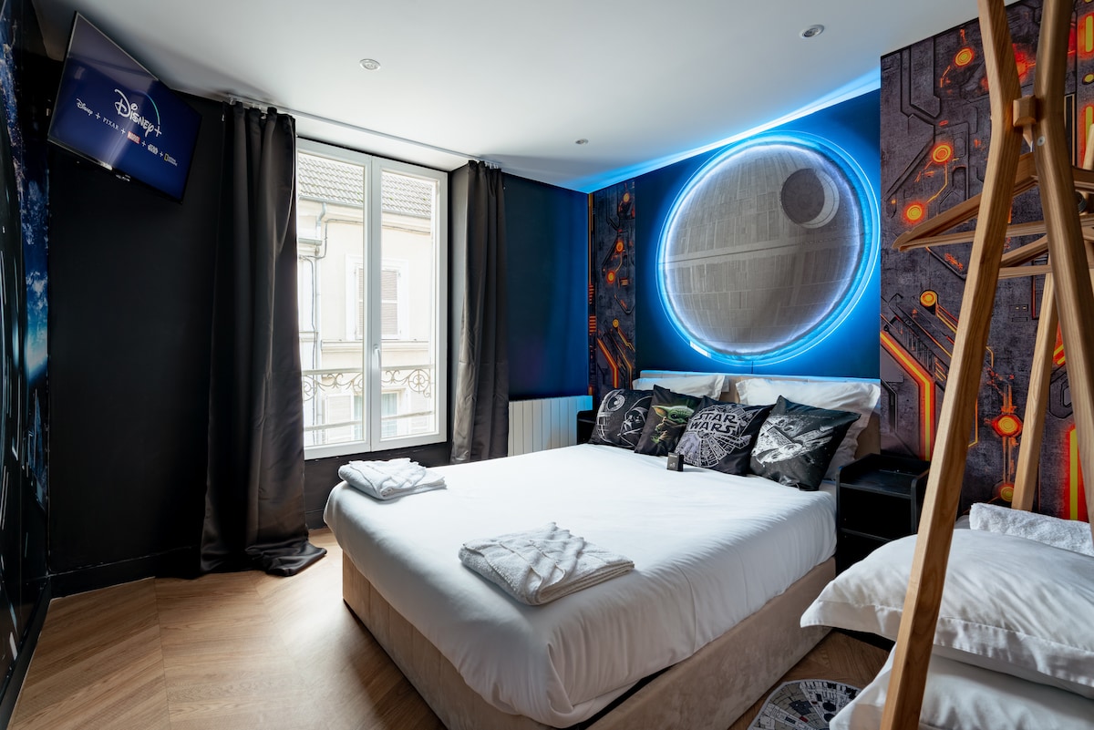 🖤 Tere tulemast Black Suite’i Elegantse ja lummava disainiga sviit, mis on mõeldud paaridele, kes otsivad ajatut hetke. See täielikult renoveeritud korter asub vaid 5 minuti kaugusel Pariisi Disneylandist ja pakub stiilset, intiimset ja peent õhkkonda, mis sobib ideaalselt romantiliseks puhkuseks. Olenemata sellest, kas tegemist on erilise õhtu, üllatuse või lihtsalt lõõgastumisega kahele, pakub Black Suite ainulaadset elamust.