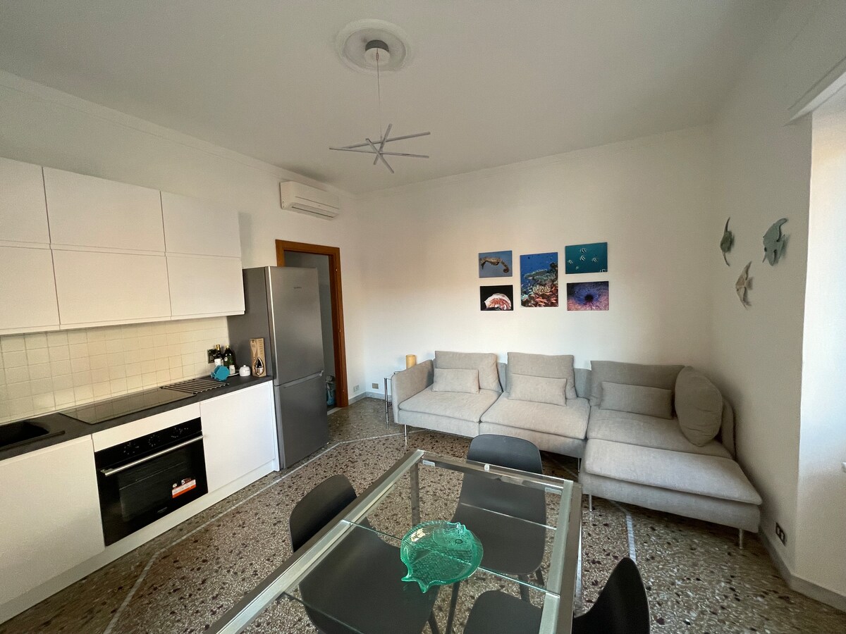Incantevole appartamento di circa 40 mq. appena ristrutturato in pieno centro storico, al primo piano in palazzina d'epoca, molto luminoso, circondato da negozi e ristoranti a pochi passi dalla stazione e dal lungomare. Dotato di una zona giorno con cucina attrezzata e un divano letto, un bagno , una camera da letto matrimoniale, aria condizionata ,TV e Wi-Fi. Check-in dalle ore 13 alle ore 16, il check-out entro le ore 13. Tassa di soggiorno da pagare in contanti al check-in.