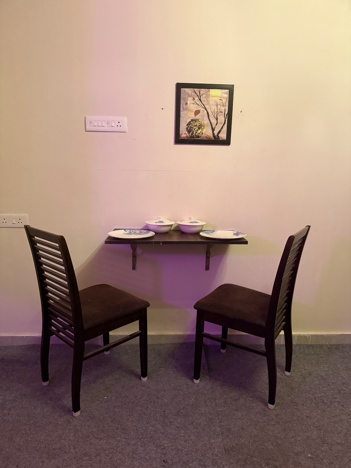I have for rent a fully furnished house of 750 sq.ft , good for couples/ families (with kids) and business travellers and well-located with grocery/ pharmacies in 200m radius, top-notch restaurants in 2-3km radius and railway station/airport within 5-8km radius. Though breakfast is not provided, microwave and induction stove are available in the apartment with coffee, tea and sugar satchets. Can suggest food delivery services if required. I live next door and am happy to help!