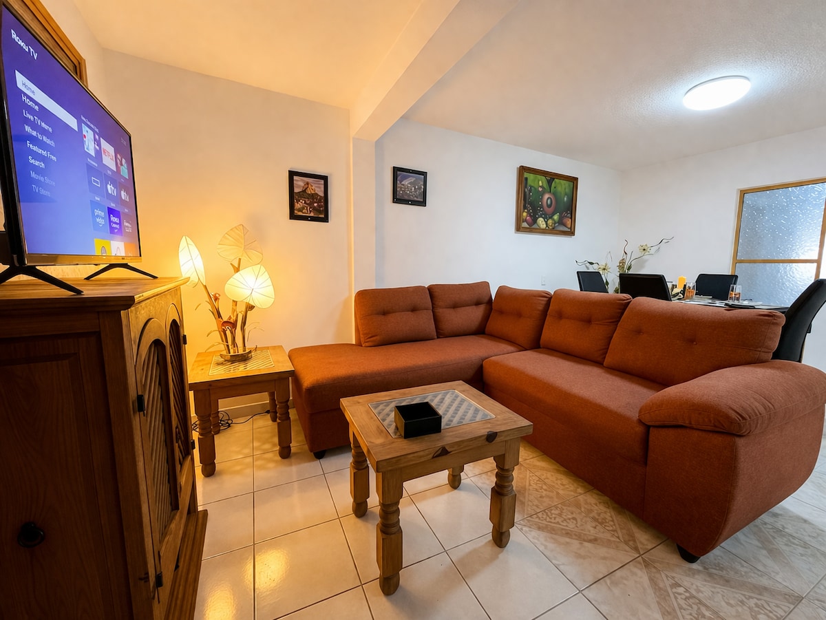 Puhka väga hubases korteris, mis sobib ideaalselt väikestele peredele või reisijatele, kes otsivad rahu. See asub ülemisel korrusel ja on suurepärase asukohaga: vaid 5-minutilise jalutuskäigu kaugusel Mirador de Cristalist ja Vitromurales 'ist ning 10-minutilise jalutuskäigu kaugusel munitsipaalzócalost. Majutuskohas on privaatne parkimine kahele autole, samuti kõik vajalikud teenused, et saaksid nautida mugavat ja muretut peatumist. Pärast Zacatlániga tutvumist meeldib sulle siin lõõgastuda!