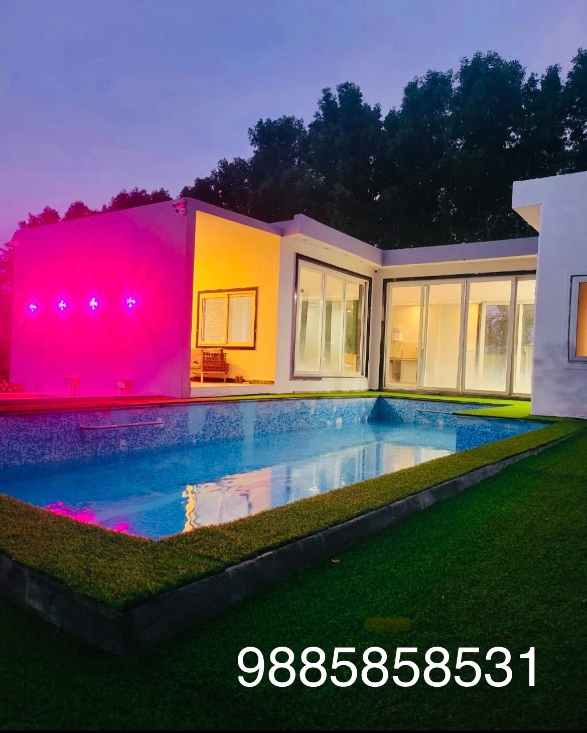Escape to a newly built farmhouse set in a 7-acre mango orchard along Shankarpally–Chevella Road, just minutes from Pragati Resorts. This serene retreat offers 2 cozy bedrooms (perfect for 4 guests), a private swimming pool, spacious dining & lounge areas, a fully equipped kitchen, outdoor party space, and unlimited high-speed Wi-Fi. Ample on-site parking adds convenience. Whether you seek relaxation or a fun gathering, this farmhouse provides the perfect blend of comfort and privacy.