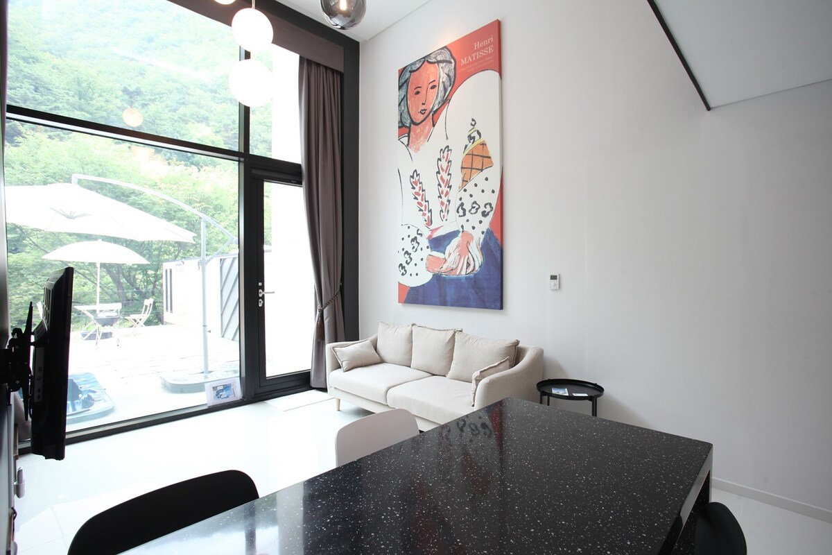 Enne broneerimist loe kindlasti majutuskoha juhiseid ja juhiseid. „Päev eemal igapäevaelust, täielik puhkus oma peidupaigas…“ „Ho-eun“, mis tähendab „rahulikku peidupaika“. See on loodussõbralik privaatne majutuskoht, mis asub Yangpyeongi eraldatud maapiirkonnas. Elutoa suur aken jäädvustab ilusaid looduslikke maastikke nagu pilti. Akna ees on avar diivan, kus kogu pere saab akna ees istuda, ja elutoa keskel siseruumides mullivann, kus saab nautida kõiki hooaegu. Kokku on kaks magamistuba, igas magamistoas on vannituba ja king-suuruses voodi. Olenevalt hooajast on välibassein avatud kuuma või sooja veega. Privaatses ruumis vees mängides saad luua veelgi erilisemaid mälestusi. Maja kõrval voolab madal vesi. Võid kogeda ka ökoloogilisi elamusi, nagu korin, dasulgi ja väikesed kalad. Stay Ho annab sulle rahuliku pausi, eemal keerulisest ja igavast igapäevaelust.