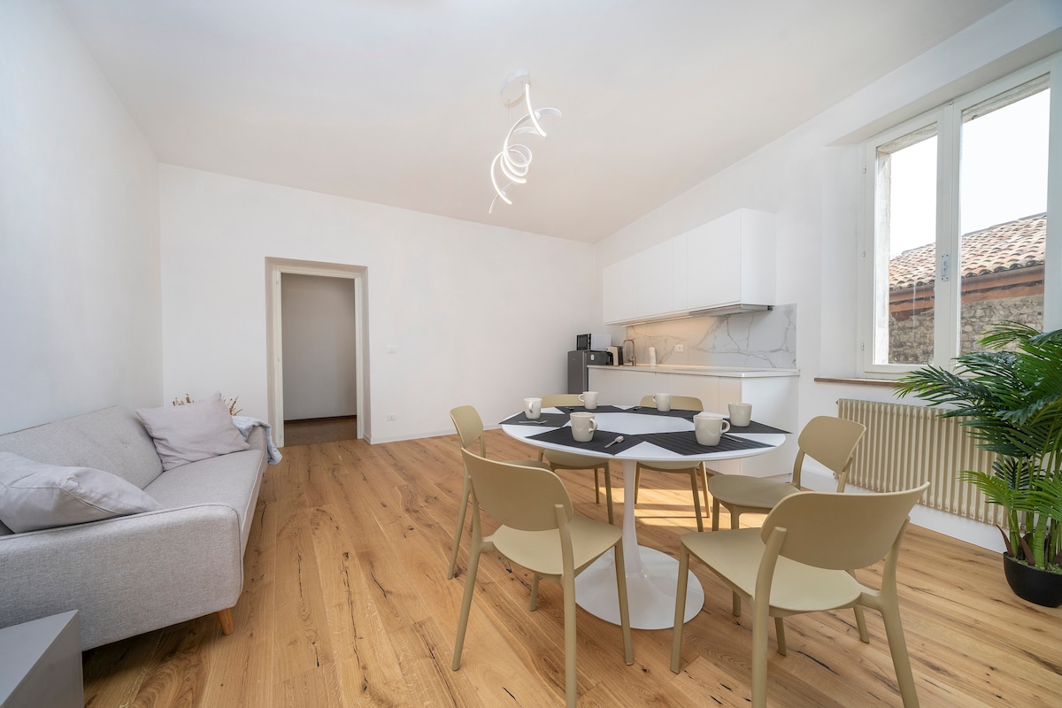 Elukoht prestiižse hoone esimesel korrusel, mis asub „Saatana silla“ sissepääsu juures, maalilisest vaatenurgast ainulaadses kohas. See on sisustatud kaasaegsete ja klassikaliste elementide, Murano klaasist lühtrite ning oliivi- ja marmorpõrandatega, mis on jaotatud üle 120 m2, 40 m2 terrassiga, kust avaneb vaade Natisone jõele ja kust avaneb hindamatu vaade Cividale 'ile. Naudi selles kesklinna majutuskohas eksklusiivset puhkust.