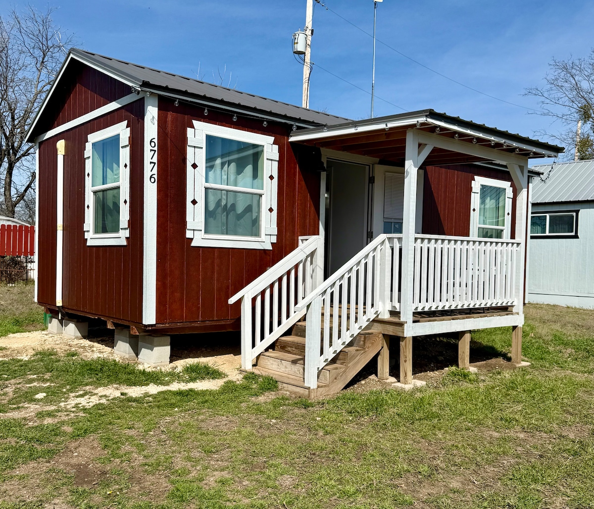 Broneeri romantiline majake kahele ja põgene linna kära eest. Meie mullivann ja dušš on piisavalt suured kahele ja ära unusta külastada meie mullivanni oma lehtlaga. Meil on ka verandal rippuv päevavoodi; see sobib ideaalselt sinu lemmikinimesega kallistamiseks. Saadaval on terve kööginurk või saad külastada fantastilisi restorane, mis on vaid mõne minuti kaugusel. Me asume Glen Rose 'i ja Granbury vahel ning läheduses on palju teha.