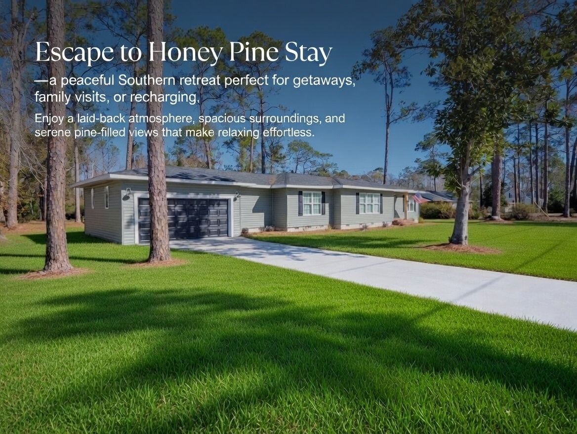 Bring the whole family to Honey Pine Stay—a great place with lots of room for fun! This charming single-story home blends comfort, privacy, and natural beauty, perfect for families, couples, or anyone looking to unwind. Inside, you'll find a bright, welcoming living area, cozy bedrooms, and everything needed for a relaxing stay. Ideal for getaways, family visits, or recharging, Honey Pine Stay delivers laid-back Southern serenity with ample space and tranquility.