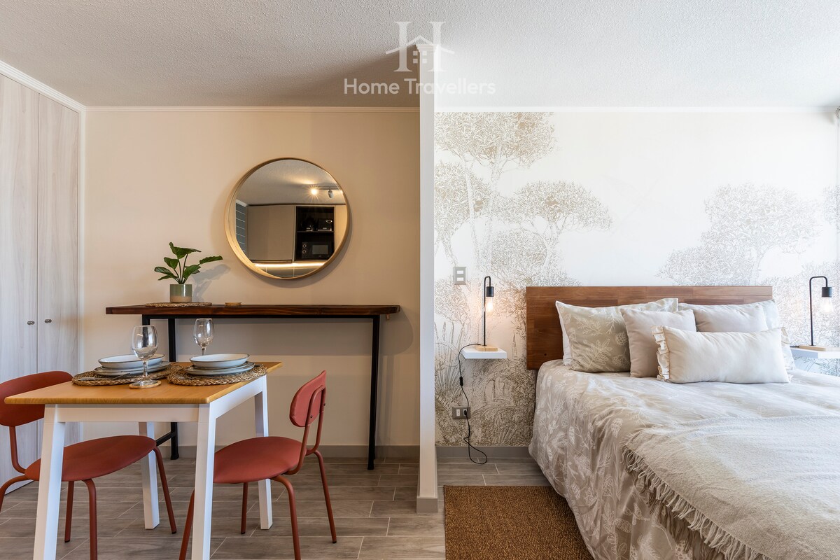 Avasta võluv kaasaegne stuudio suurepärases asukohas Santiago kesklinnas, mis sobib ideaalselt paaridele või reisijatele, kes otsivad mugavust. Selles on mugav kaheinimesevoodi, täielikult varustatud köök, kaasaegne vannituba ja hubane terrass, mis sobib ideaalselt lõõgastumiseks, nautides samal ajal linnavaateid. Jalutuskäigu kaugusel populaarsetest restoranidest, ühistranspordist ja peamistest turismiobjektidest. Broneeri kohe ja koge parimat linnakogemust Santiagos!